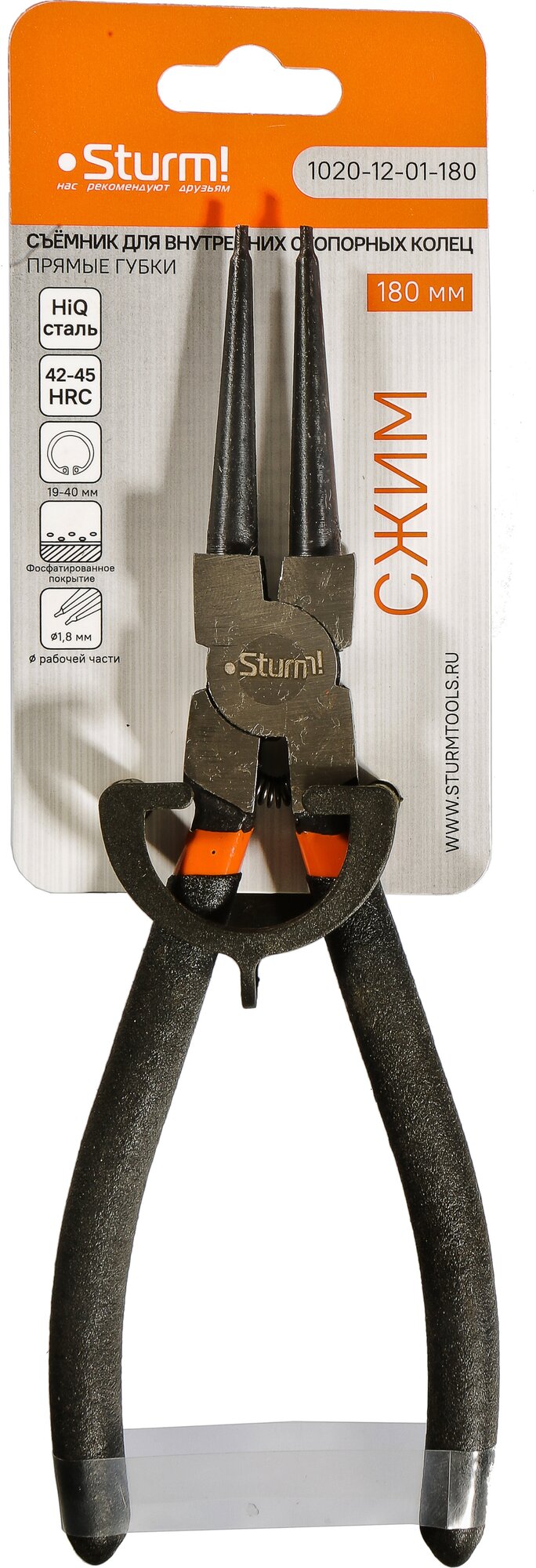Съёмник стопорных колец 180мм STURM 1020-12-01-180 (прямые губки, сжим) информация: