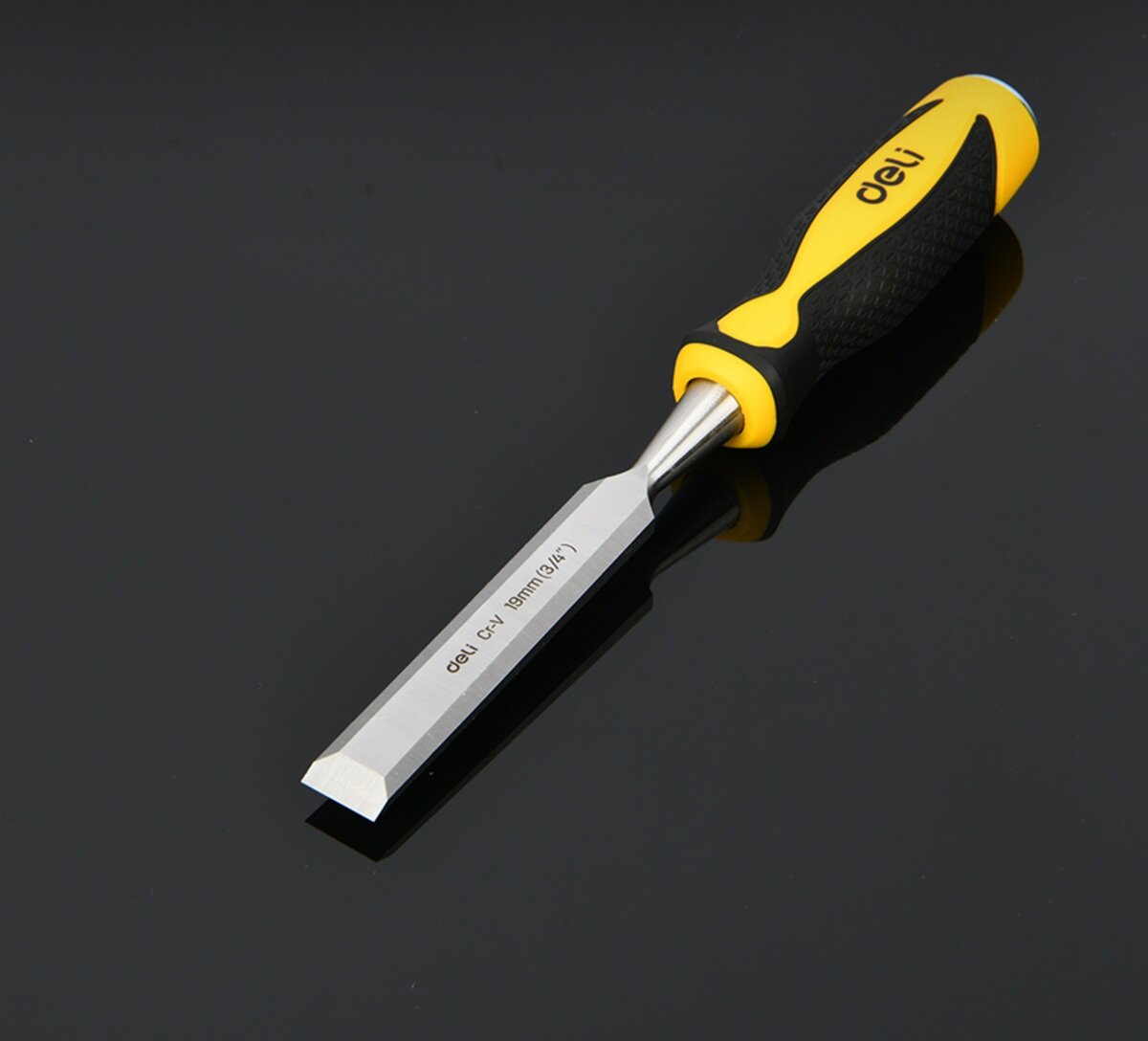 Стамеска плоская 19мм Deli DL6219-E1 (CrV сталь, рабочая длина 140мм, угол заточки 25 град, прорезиненная рукоять) информация: