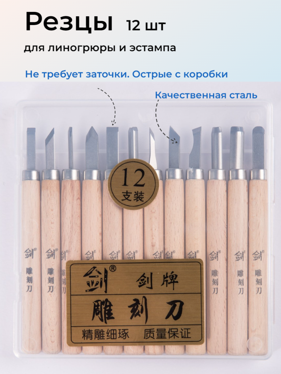 Отзывы на Набор резцов для линогравюры 12 шт, штихеля для ксилографии, стамески для эстампа