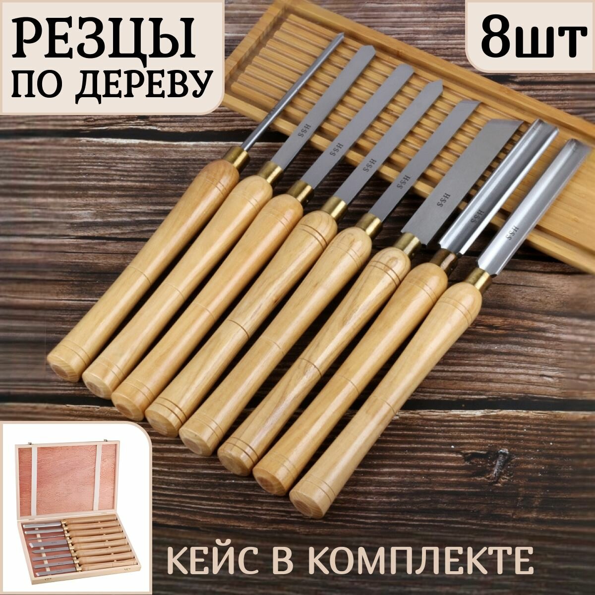 10 цен на Резцы по дереву токарные, деревянная рукоятка, набор ножей для токарного станка в коробке 8 шт