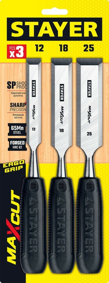 STAYER Max-Cut набор стамесок с пластмассовой рукояткой, 3шт ( 1820-H3_z01 ) информация: