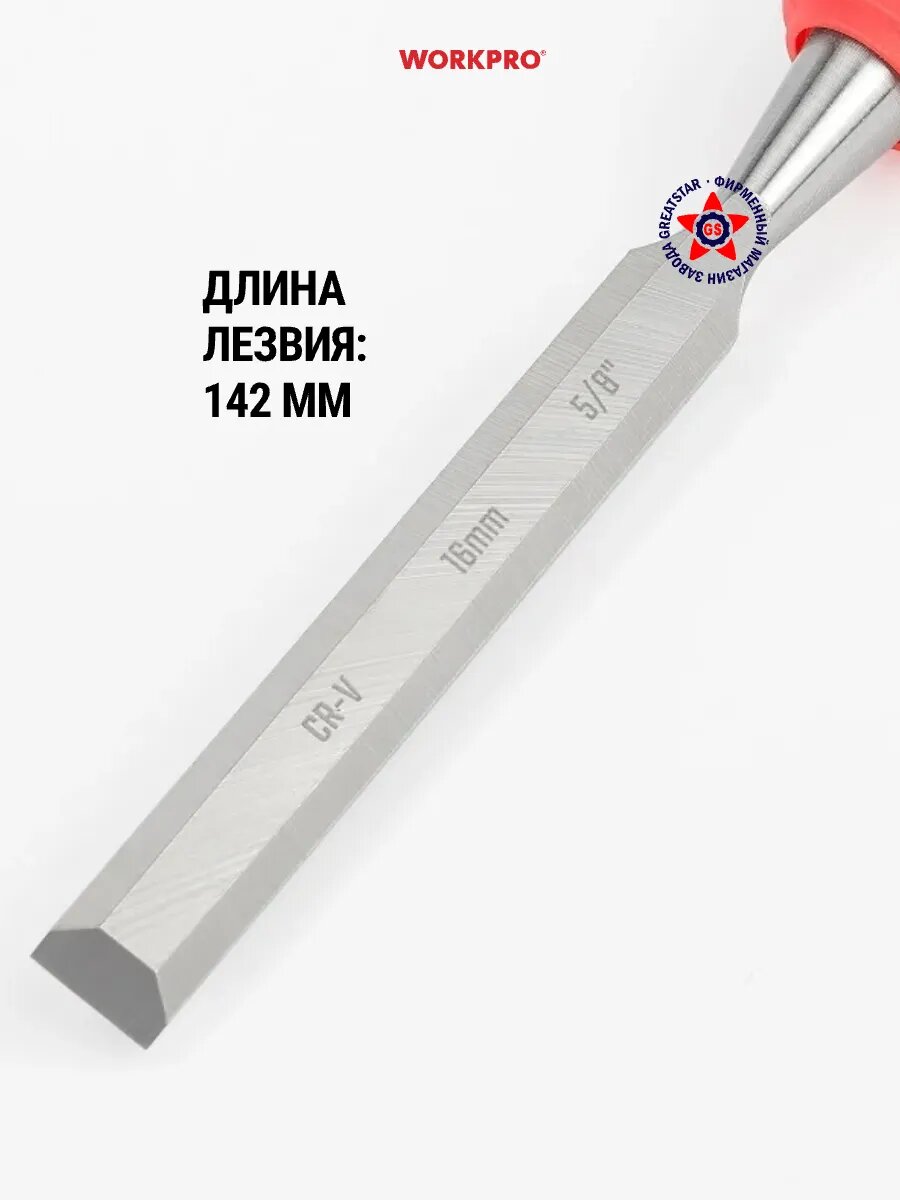 Отзывы на Стамеска-долото с двухкомпонентной рукояткой, 16 мм, CR-V WP243007, WORKPRO #WP243007, цвет синий