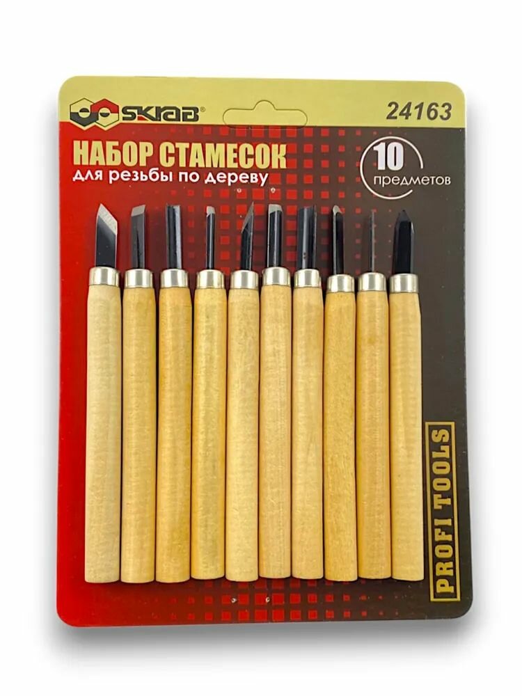 10 цен на Резцы по дереву набор 10 предметов с деревянной ручкой SKRAB 24163