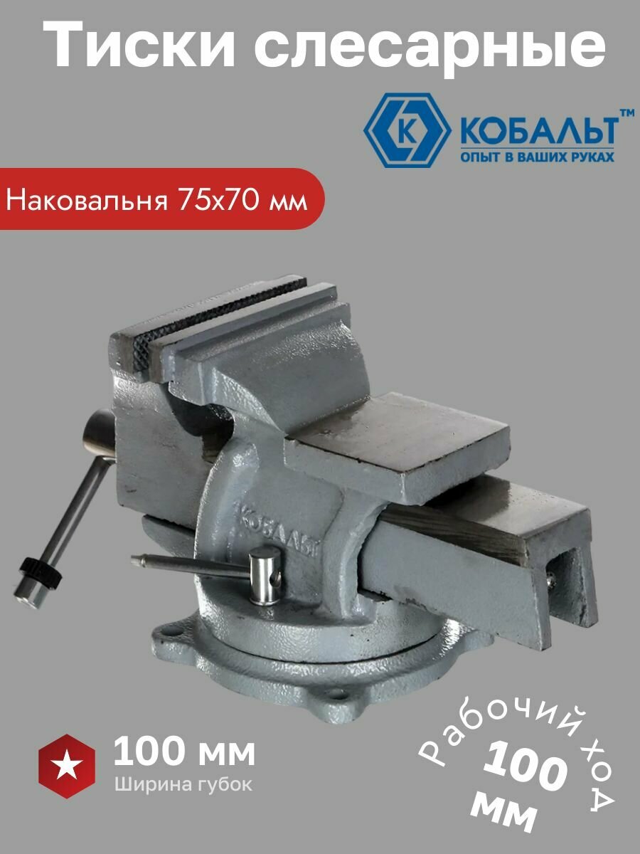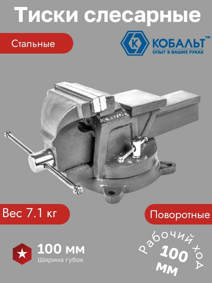Тиски слесарные поворотные 100х100 мм 7.1 кг кобальт с наковальней информация: