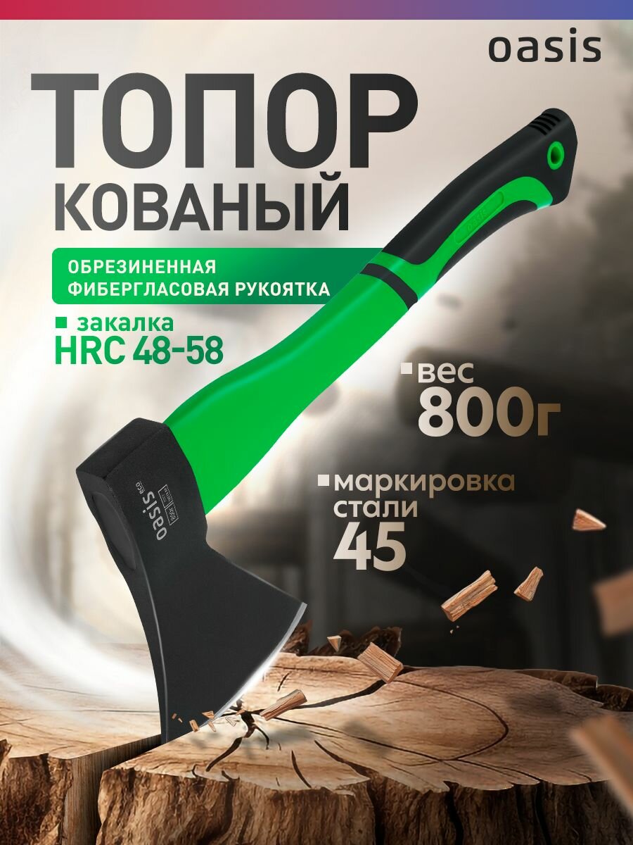 Топор с обрезиненной фибергласовой рукояткой Oasis Eco 800 г_103010402002 информация: