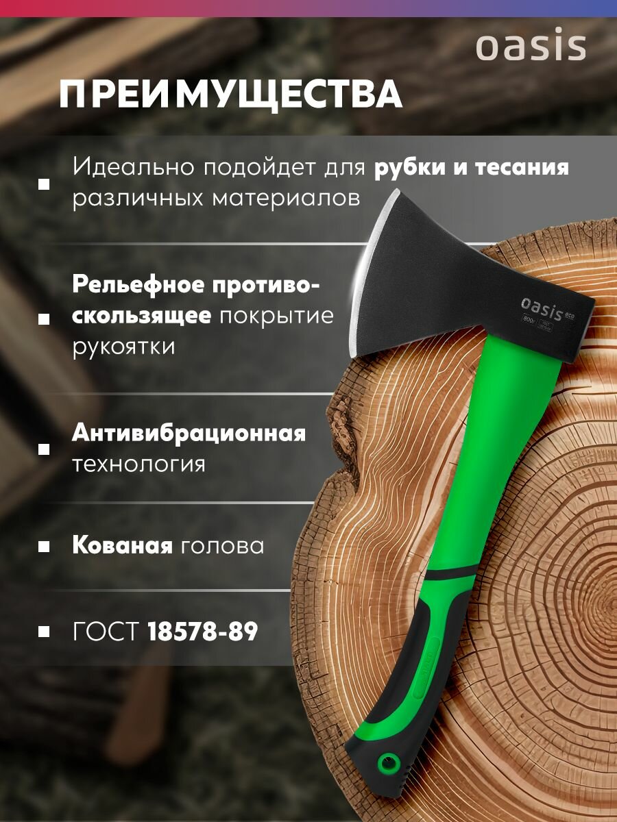 10 цен на Топор с обрезиненной фибергласовой рукояткой Oasis Eco 800 г_103010402002