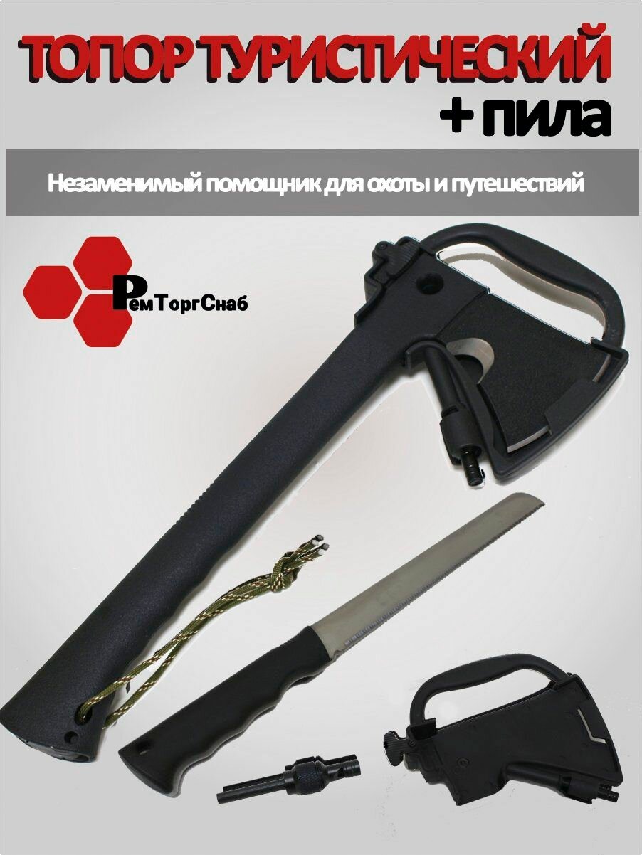 10 цен на Топор многофункциональный "СССР", туристический, с чехлом, чёрный, сталь / огниво / пила / свисток / подарок на 23