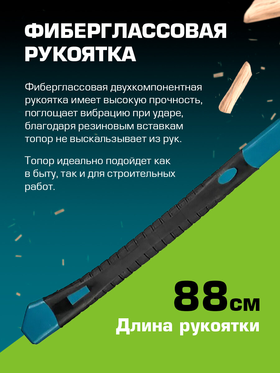 Топор с фиберглассовой ручкой и резиновой противоскользящей накладкой 500 грамм Forsage