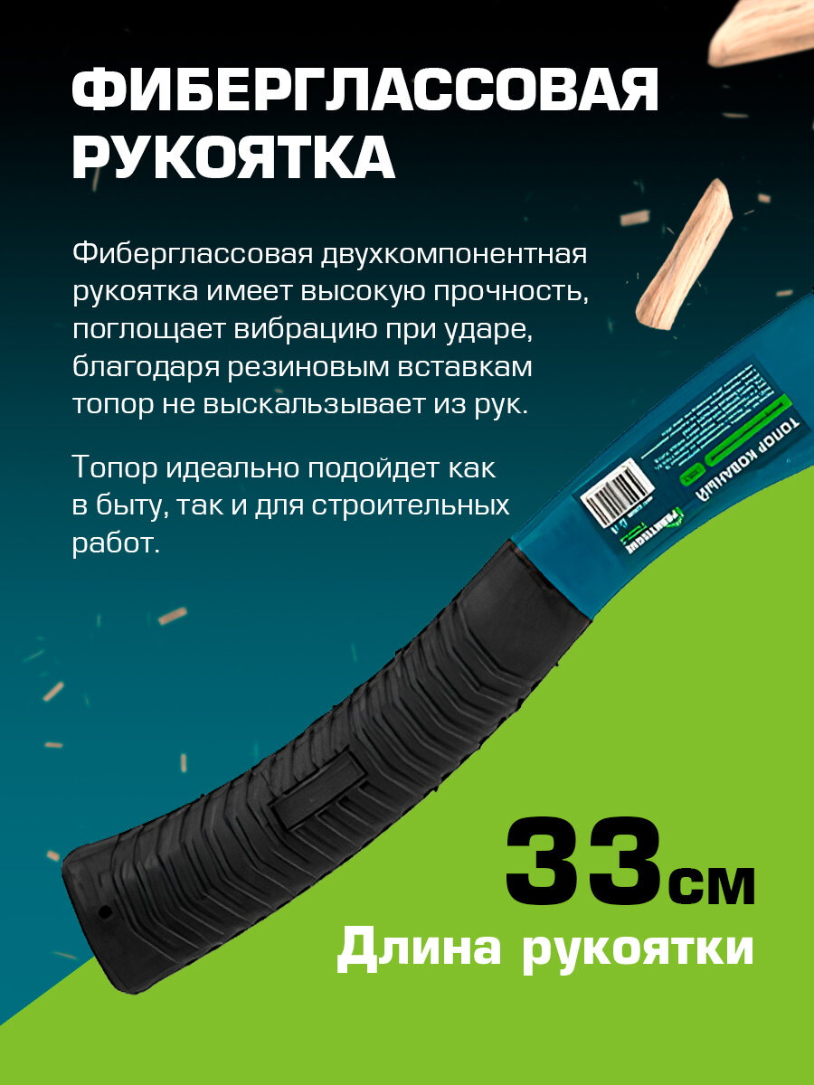 Топор с фиберглассовой ручкой и резиновой противоскользящей накладкой 500 грамм Forsage