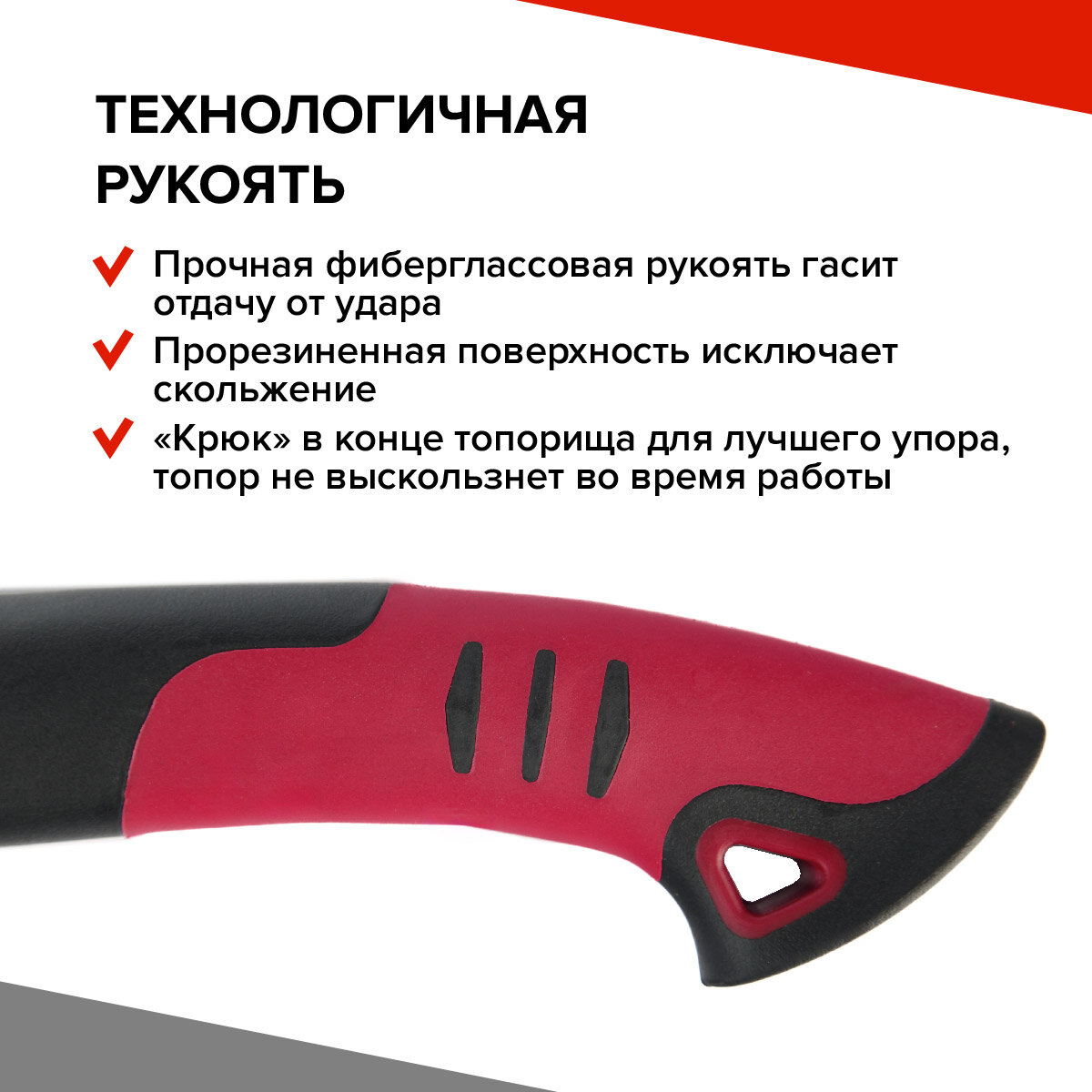 Топор с фиберглассовой ручкой и резиновой противоскользящей накладкой 500 грамм Forsage