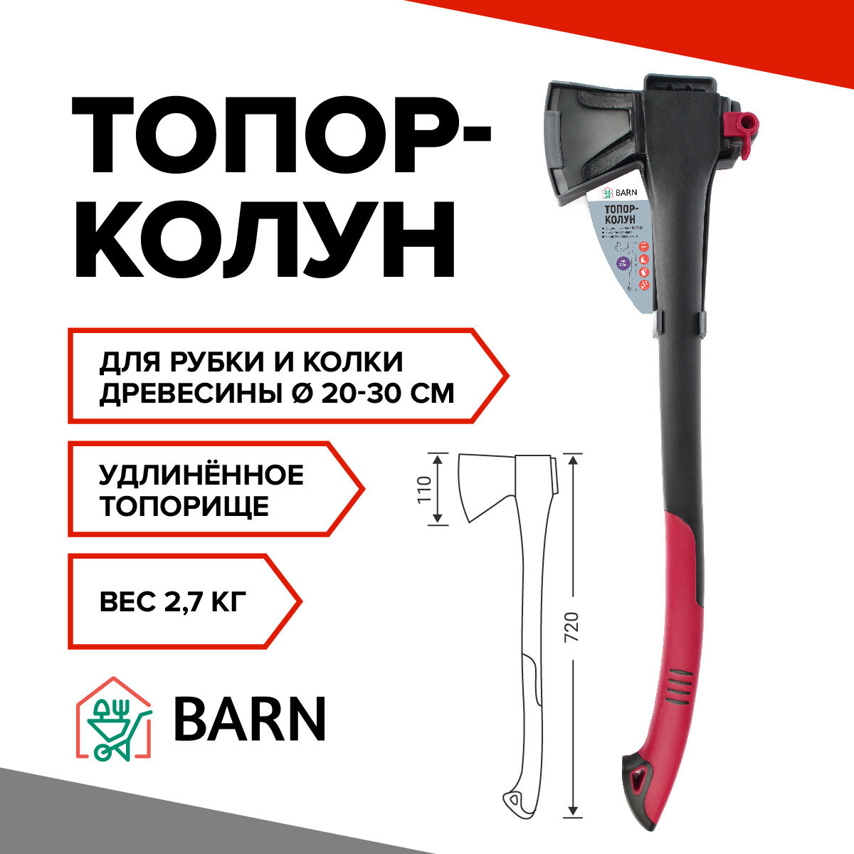 Топор-колун BARN ВМ-720 Кованная сталь, Фиберглассовая рукоятка, 2.7 кг информация: