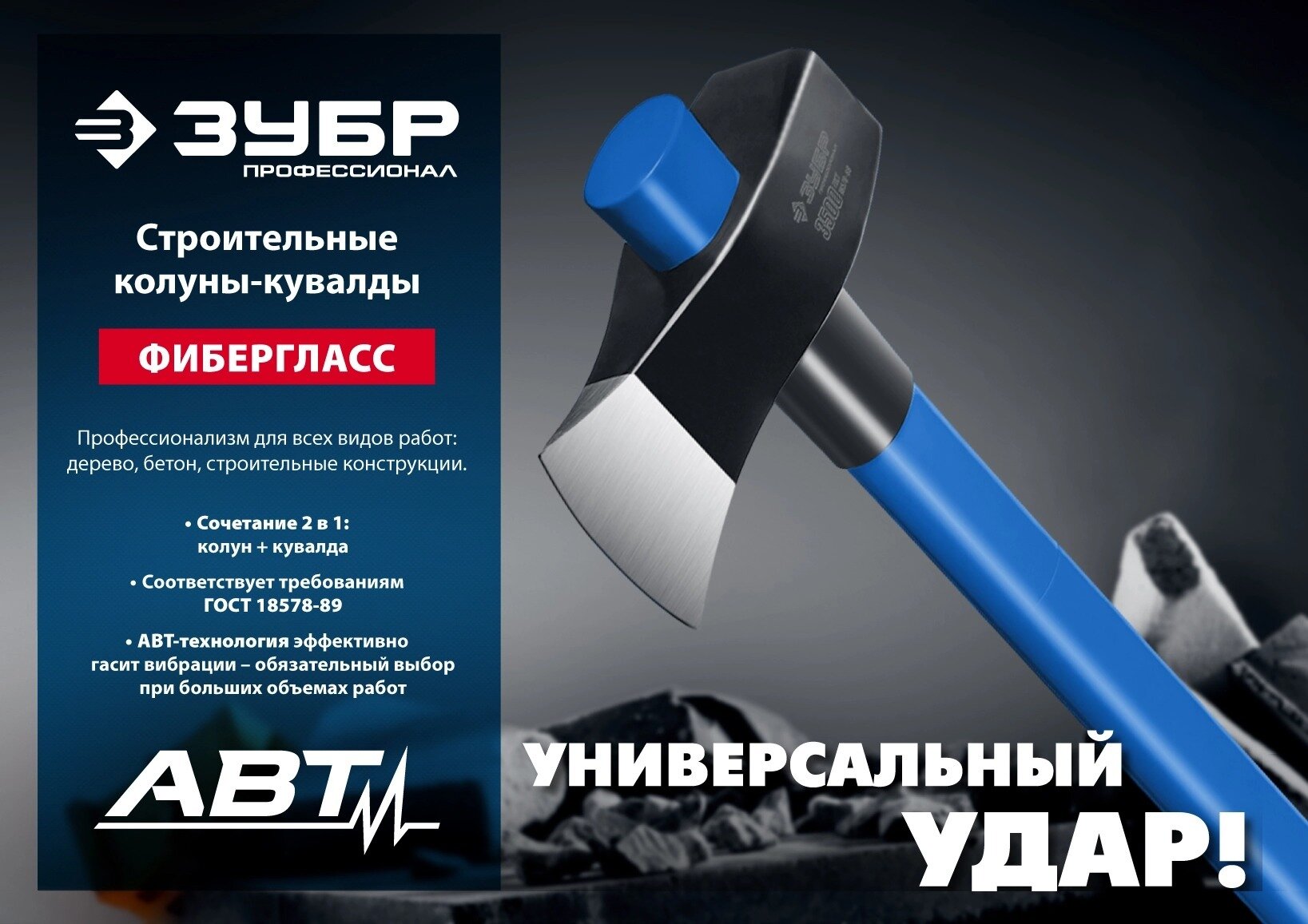 10 цен на ЗУБР 4400 г, колун-кувалда кованный с двухкомпонентной фиберглассовой рукояткой 900 мм