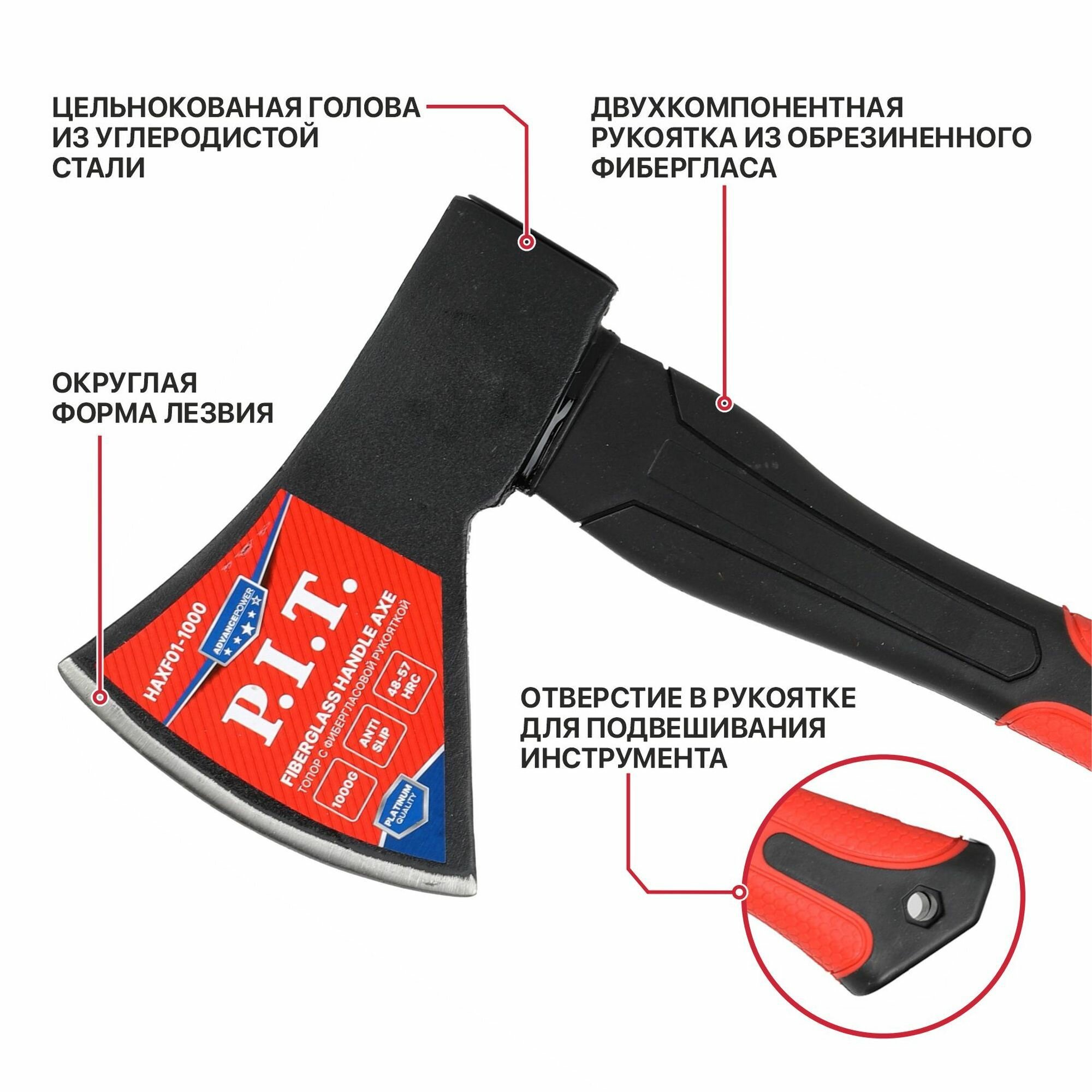 Топор с фибергласовой рукояткой P.I.T. cерия ADVANCE HAXF01-1000 (1000/1430г, кованый, 430мм) информация: