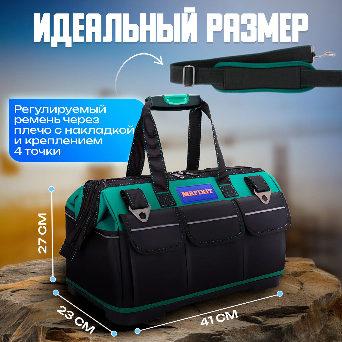 Отзывы на Сумка для инструментов с пластиковым дном 41*23*27см, 26 литров, влагостойкая, 16 карманов
