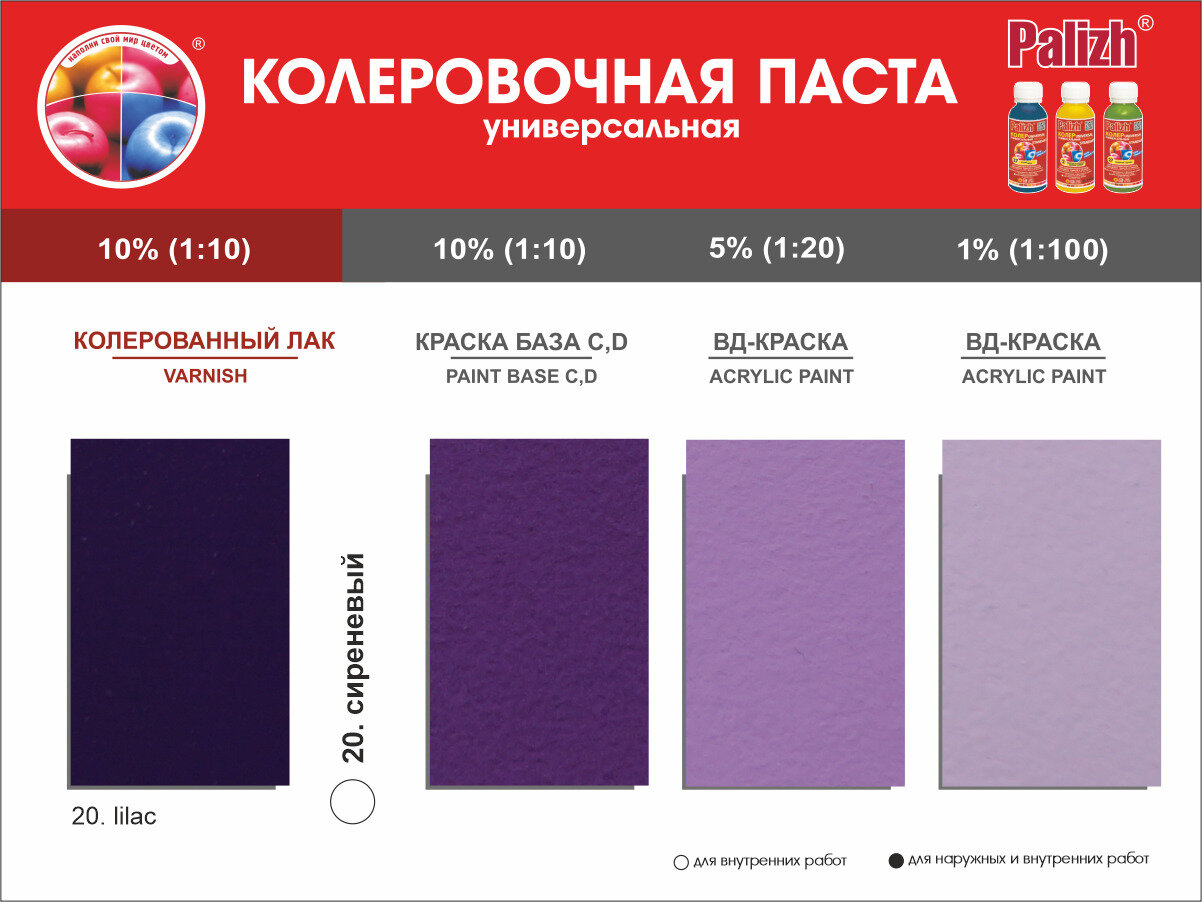 Колеровочная паста Palizh Universal Standart ST-20 сиреневый 0.1 л информация: