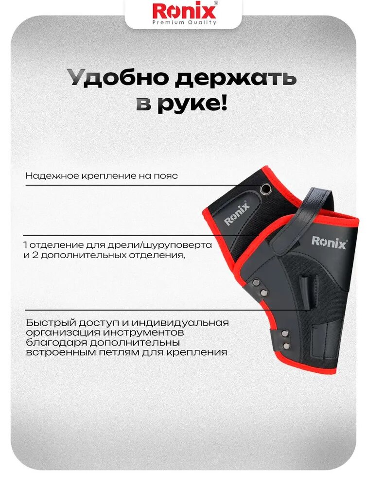 Сумка для инструмента Ronix кобура для дрели/шуруповерта на ремень 3 отделения информация: