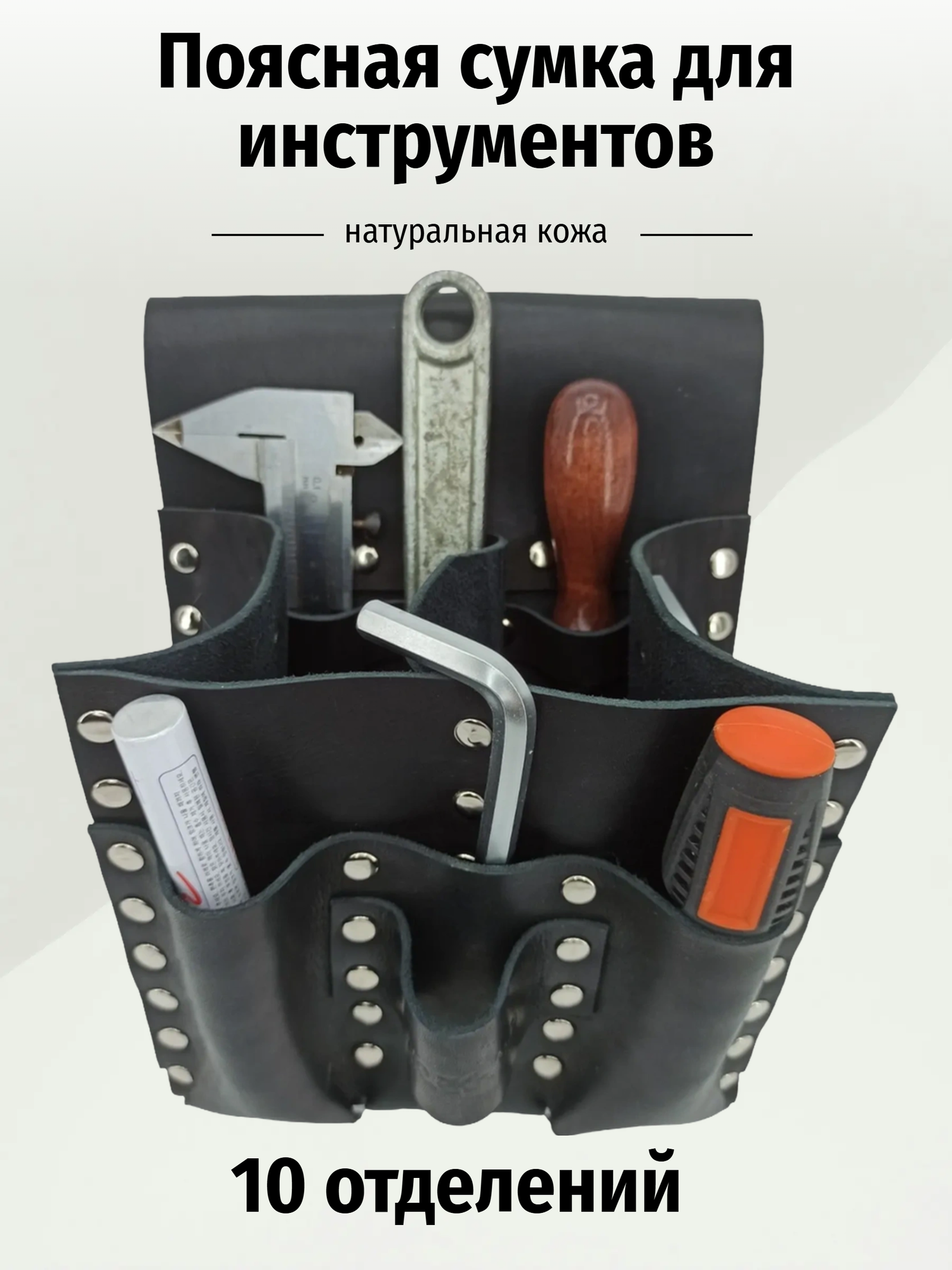 10 цен на Сумка поясная для инструментов, натуральная кожа, 10 отделений