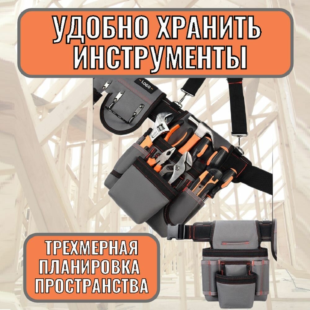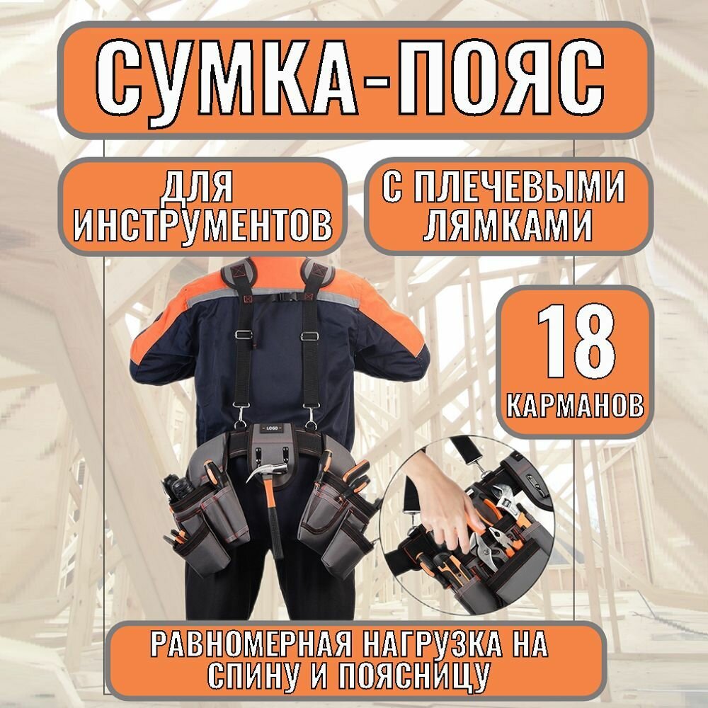 10 цен на Пояс строительный для инструмента и шуруповерта 18 отсеков (серый)