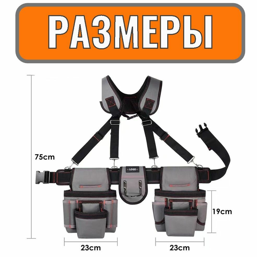 Отзывы на Пояс строительный для инструмента и шуруповерта 18 отсеков (серый)