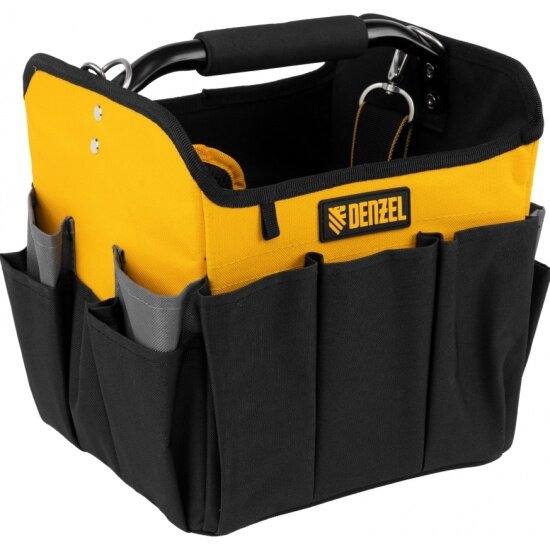 10 цен на Переноска для инструмента Denzel , 260х240х300 мм, 22 кармана, наплечный ремень, 90294