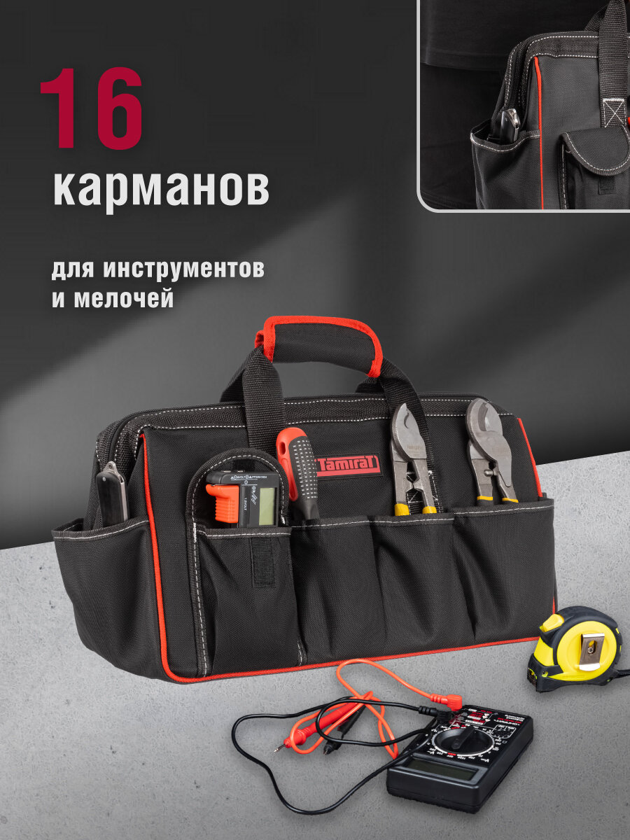 Сумка для инструмента TAMIRAT 91 363 TTTA-Bag16 (с ножками, с плечевым ремнем 300*170*220 мм) 1 255 ₽