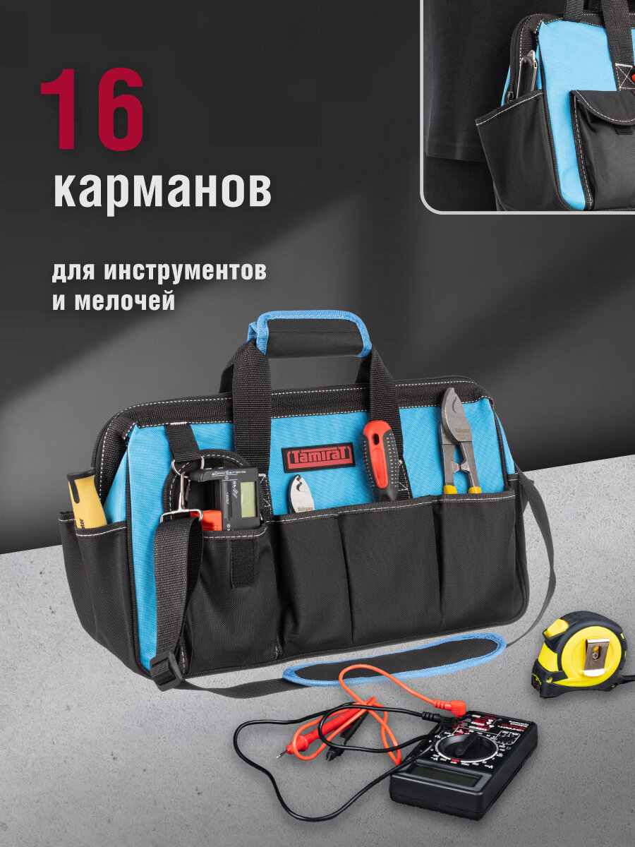 10 цен на Сумка для инструмента TAMIRAT 91 367 TTTA-Bag20 (с ножками, с плечевым ремнем 420*190*260 мм)