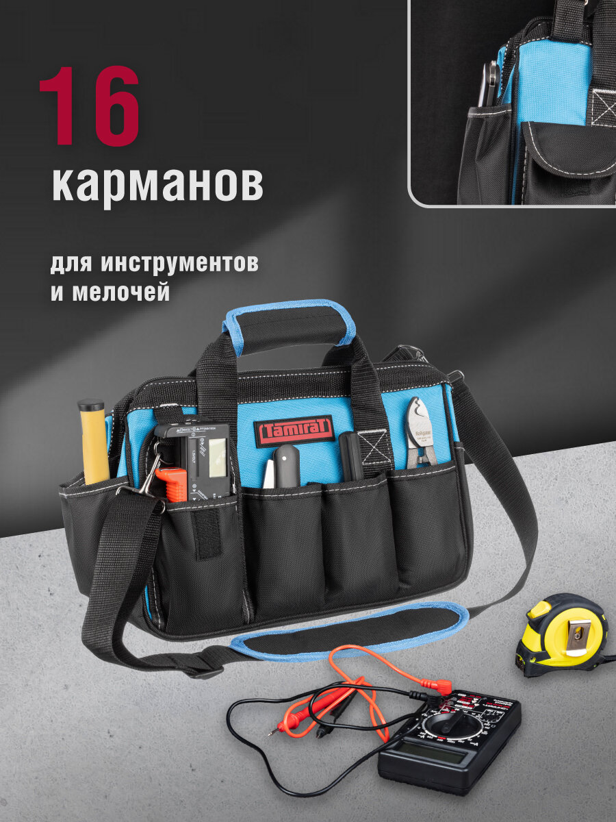 10 цен на Сумка для инструмента TAMIRAT 91 363 TTTA-Bag16 (с ножками, с плечевым ремнем 300*170*220 мм)