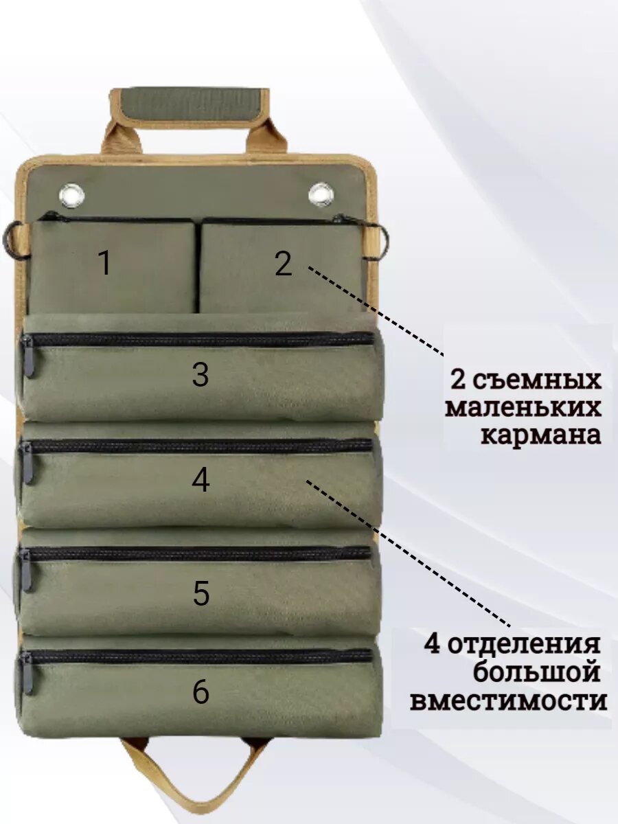 10 цен на Органайзер "Трансформер", для ручного инструмента, 6 отделений, серо-зеленый