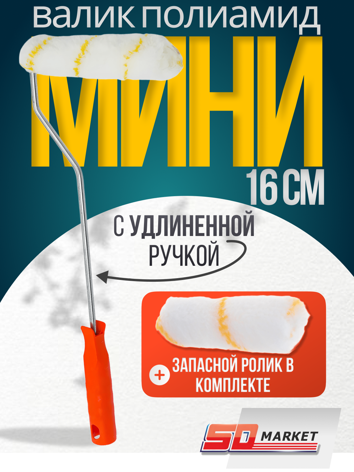 Валик малярный мини 10 см для краски с удлиненной ручкой 269 ₽