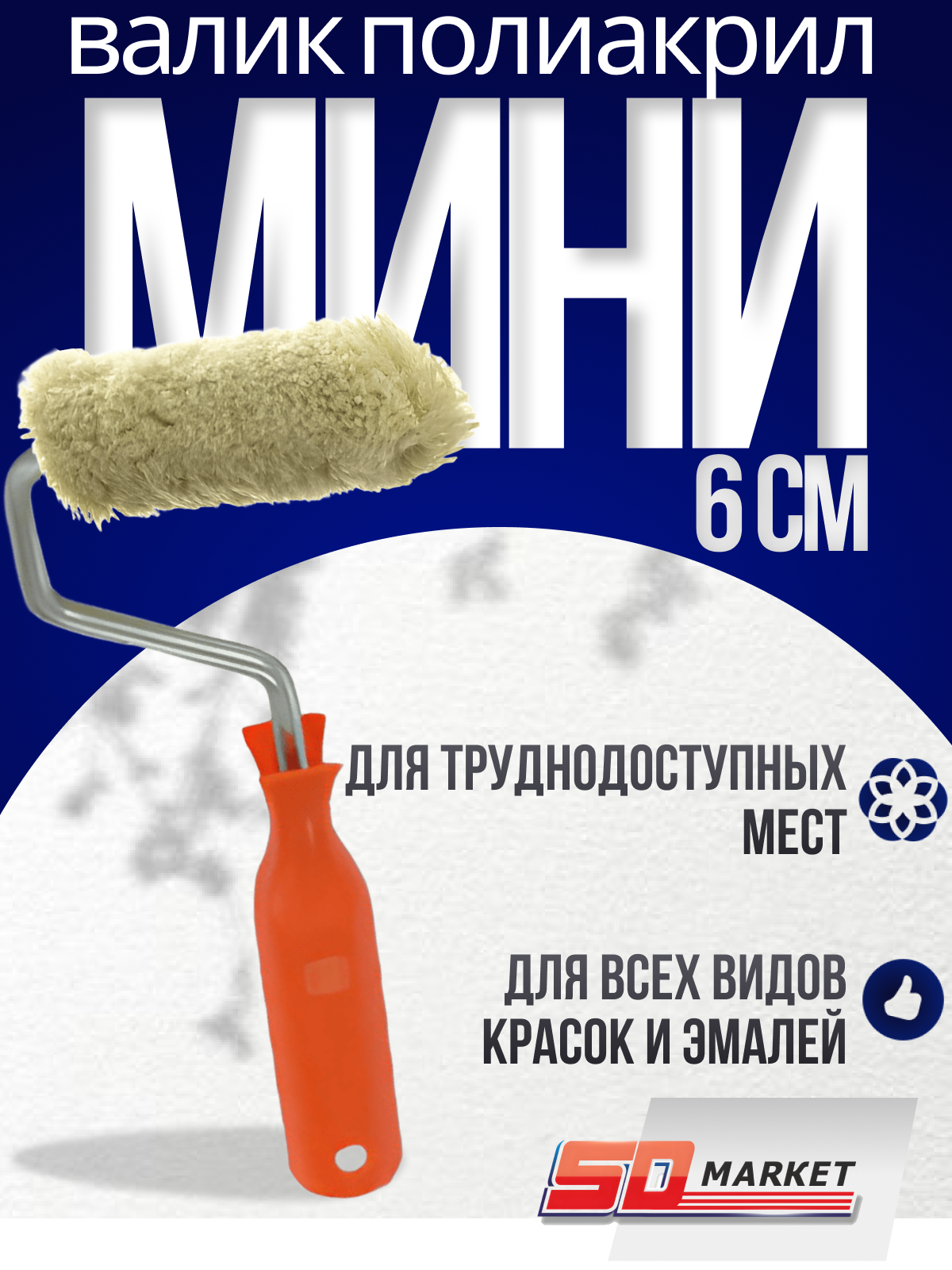 Валик малярный, мини-валик полиакриловый 6 см информация: