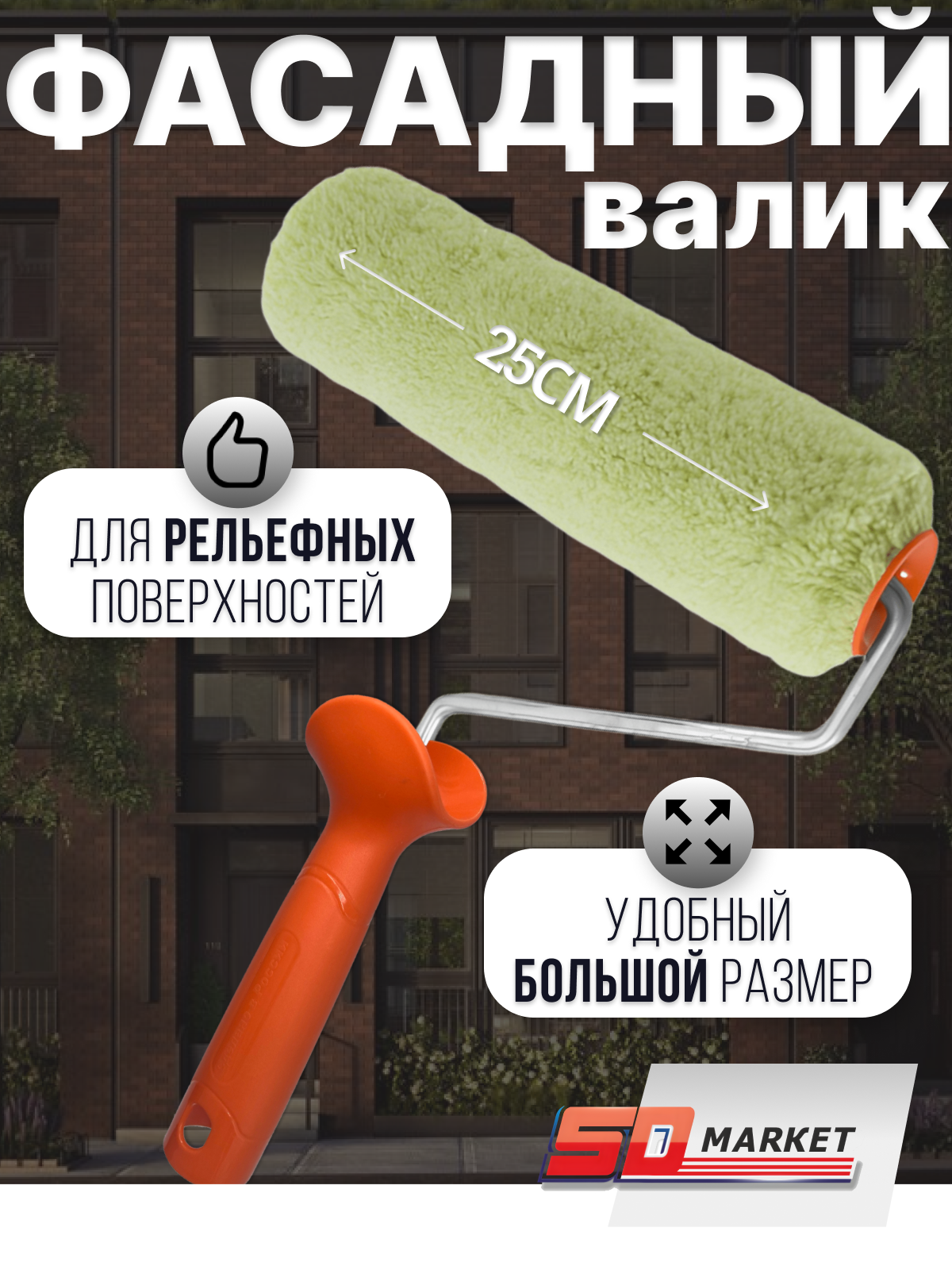 Валик для краски стен и фасадов 25 см, DECOR 888-2240 информация: