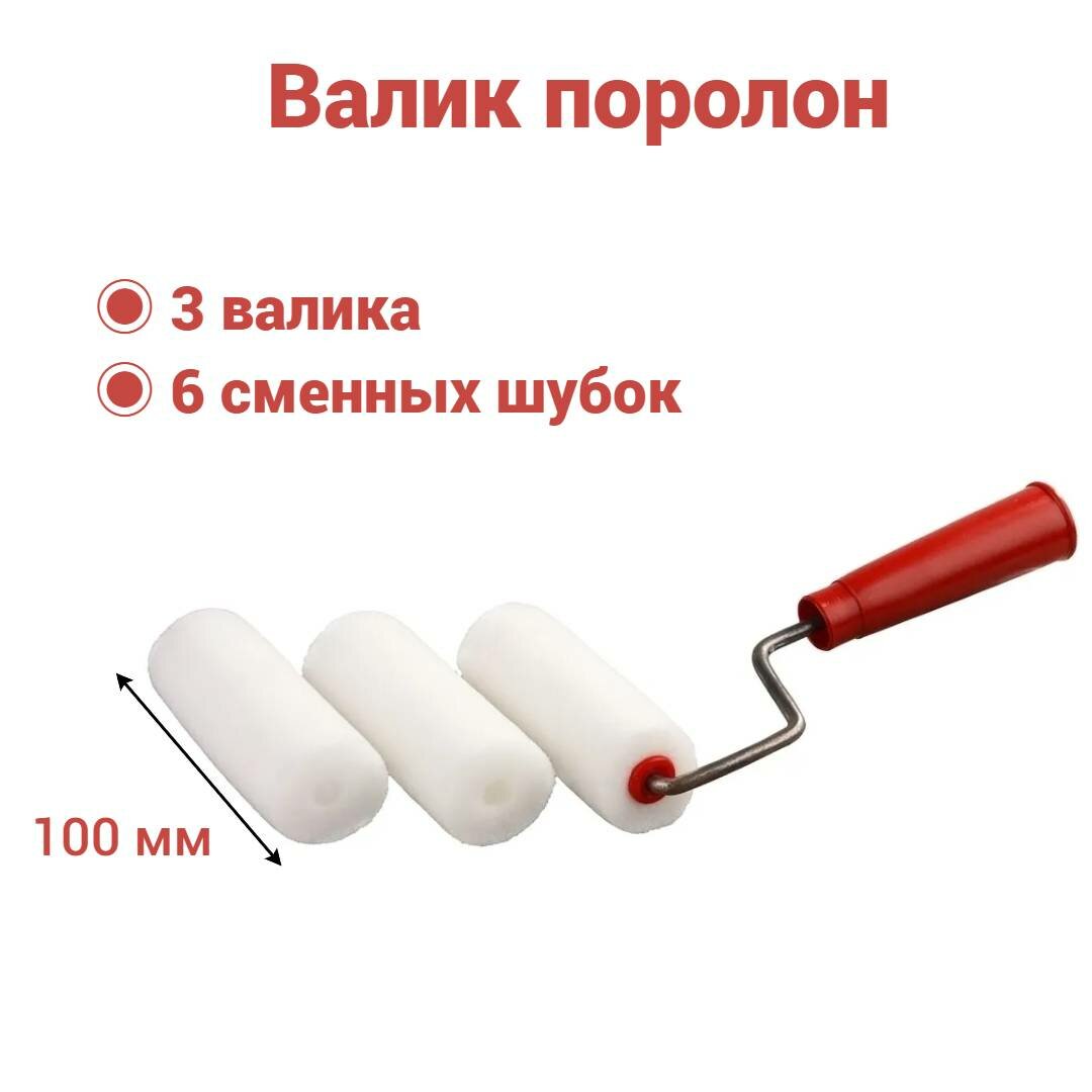 Валик поролон 100 мм, D6 для лаков, клеев, красок на водной основе (3 штуки + 6 сменных шубки) информация:
