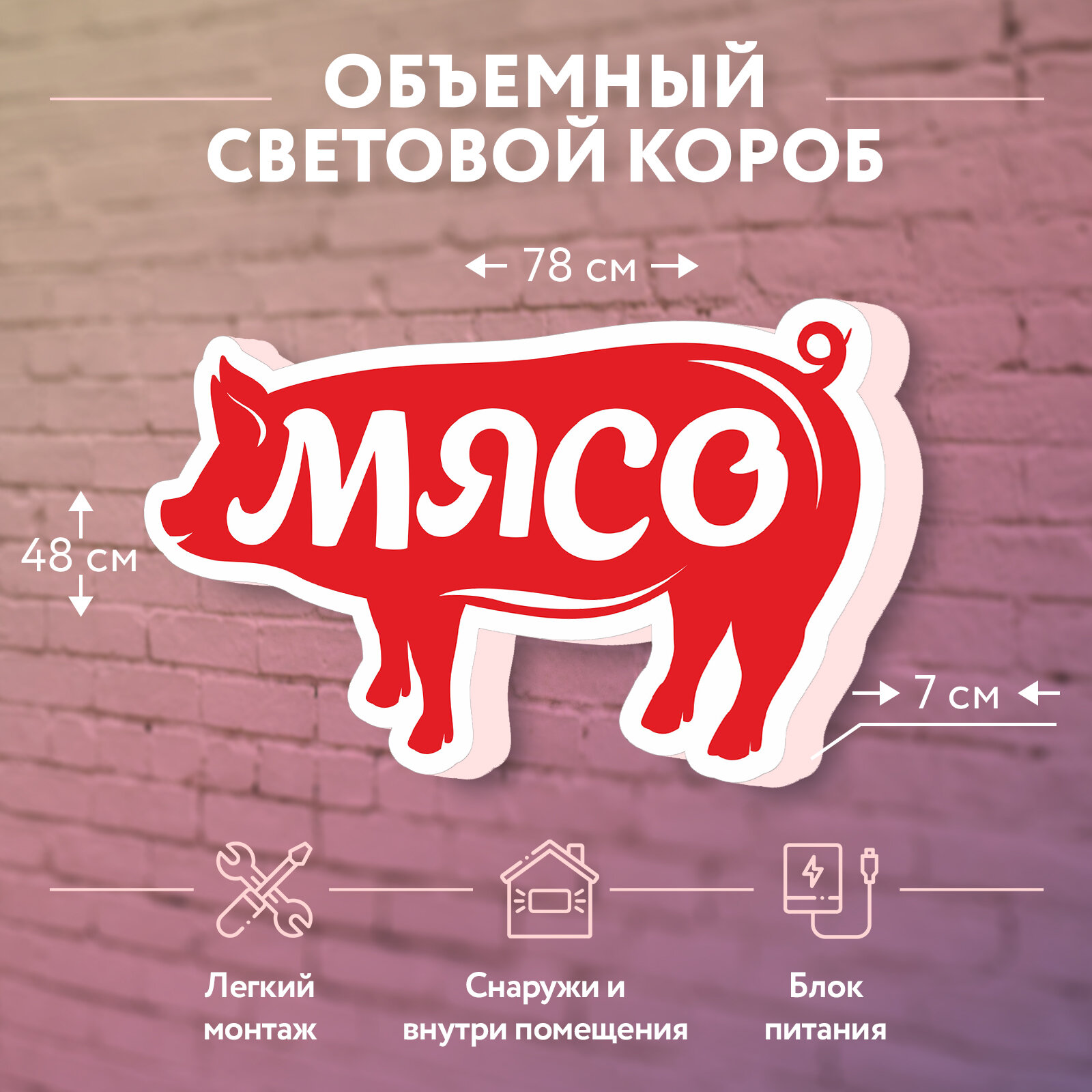 10 цен на Световая вывеска "Мясо" Объемный короб с подсветкой Лайтбокс фигурный