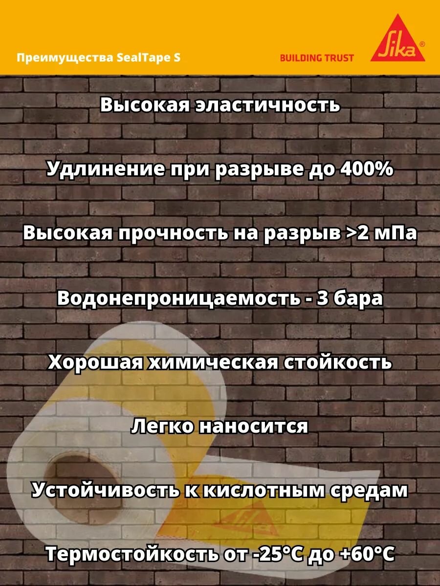 Отзывы на Гидроизоляционная лента Sika SealTape S RU для швов, стыков, углов 50 м х 70 мм