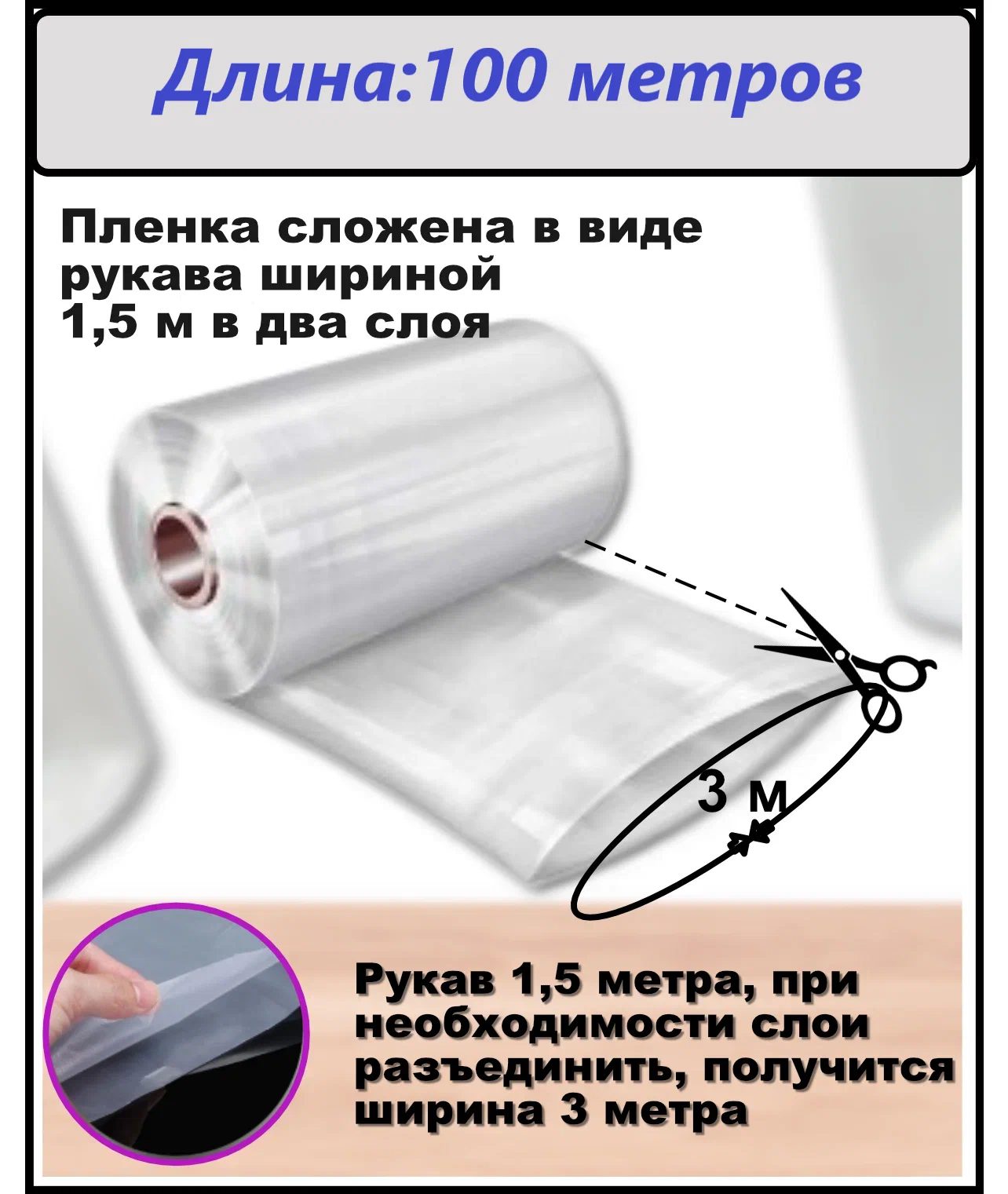 Пленка полиэтиленовая ГОСТ 200 мкм 3*10 метров (рукав 3м сложен в 2 раза) садовница укрывная для теплиц и парников / строительная / защитная
