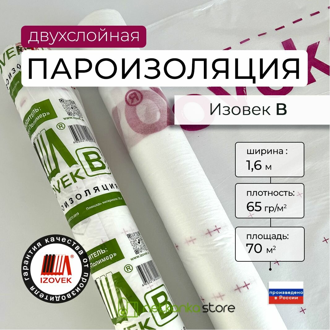 10 цен на Пароизоляция двухслойная IZOVEK В65 70м2 непроницаемая (1.6*43.75м) для стен, кровли, потолка и пола
