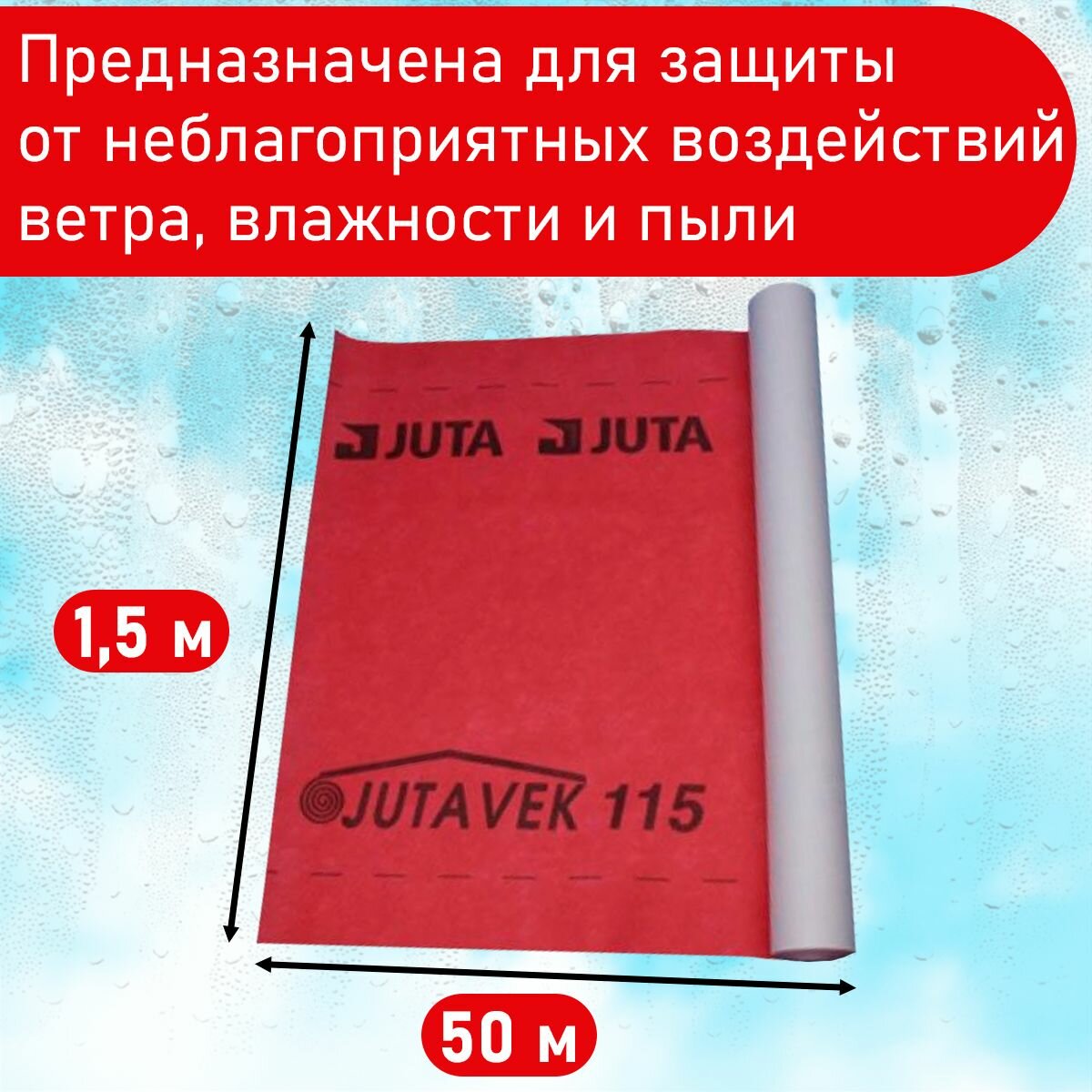 Juta Ютавек 115 jutavek ( 1,5 х 50 м / 75 Кв м) Мембрана супердиффузионная подкровельная водонепроницаемая информация: