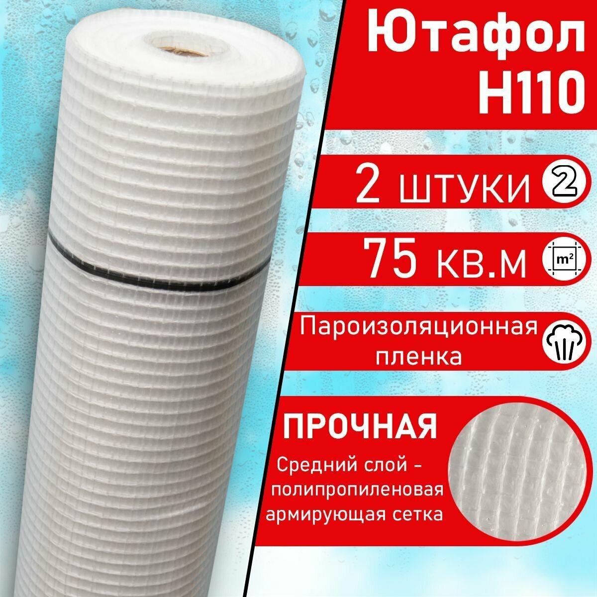 Juta Ютафол Н 110 Стандарт ( 1,5 х 50 м / 75 Кв м) 2 штуки Пароизоляционная армированная пленка для крыши и стен ( h110) информация: