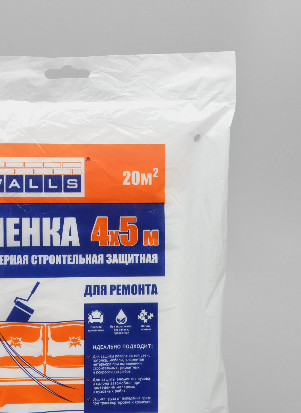 Пленка укрывная для ремонта 4*5м , 20м2 , (2 штук) полимерная строительная защитная информация: