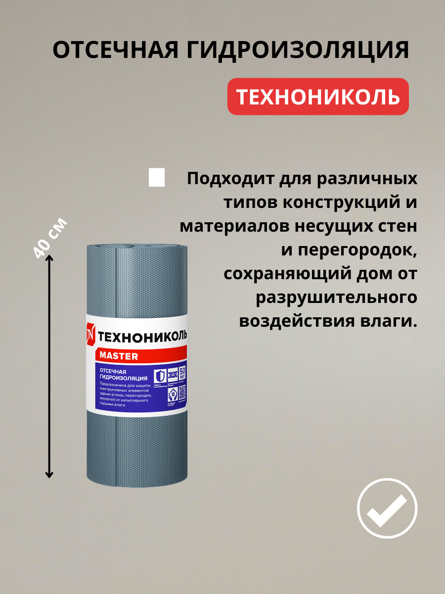 Отзывы на Гидроизоляция Технониколь 400, длина 20м, ширина 0,4м, толщина 1мм, 3 слоя