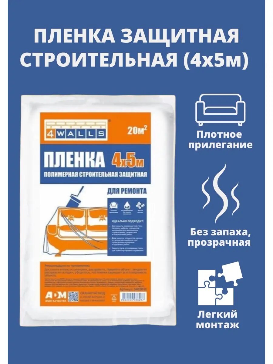 Отзывы на Пленка укрывная для ремонта 4*5м , 20м2 , (10 штук) пленка прозрачная укрывная