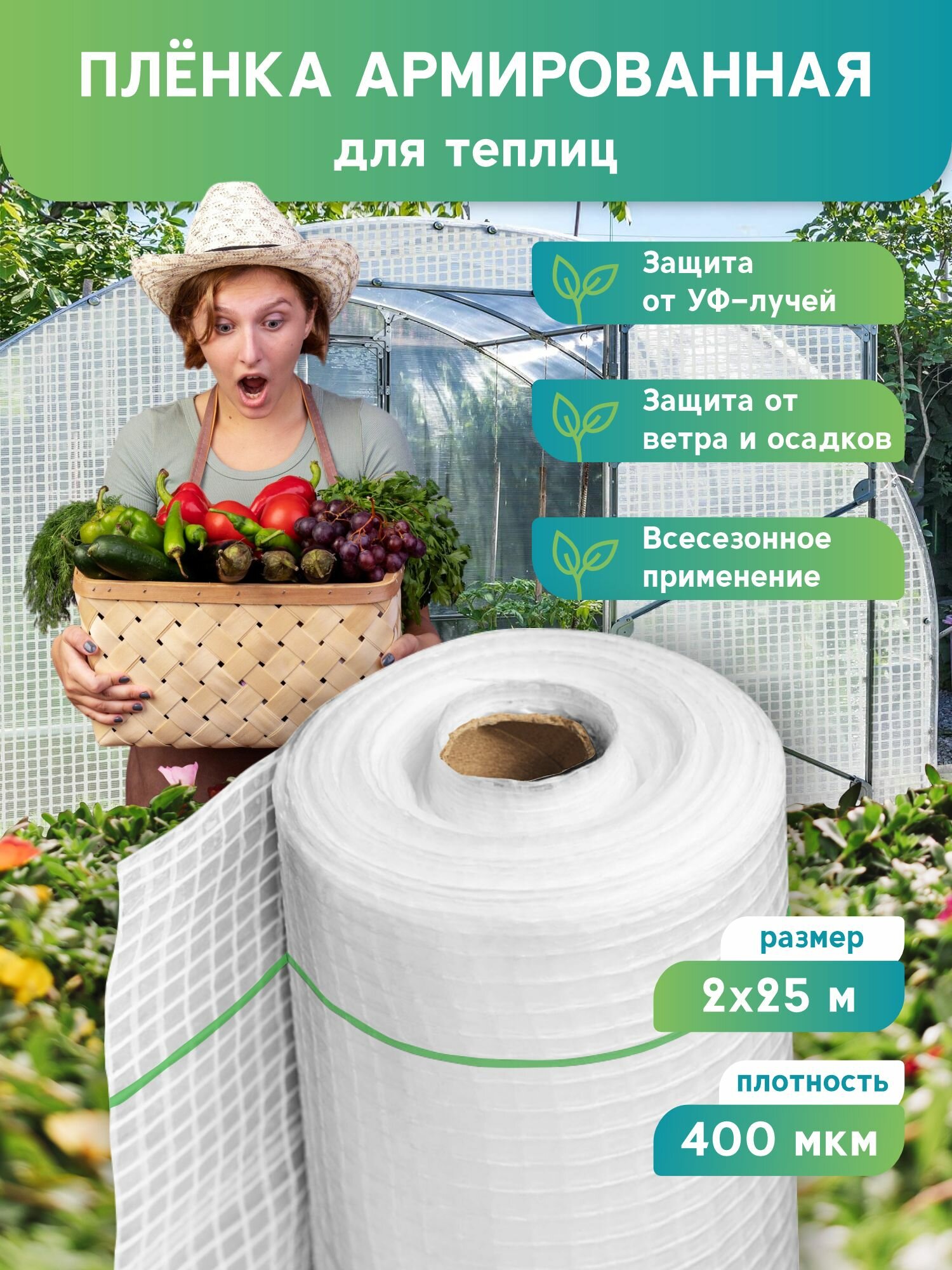 10 цен на Армированная пленка для теплиц 2х25, 400 микрон