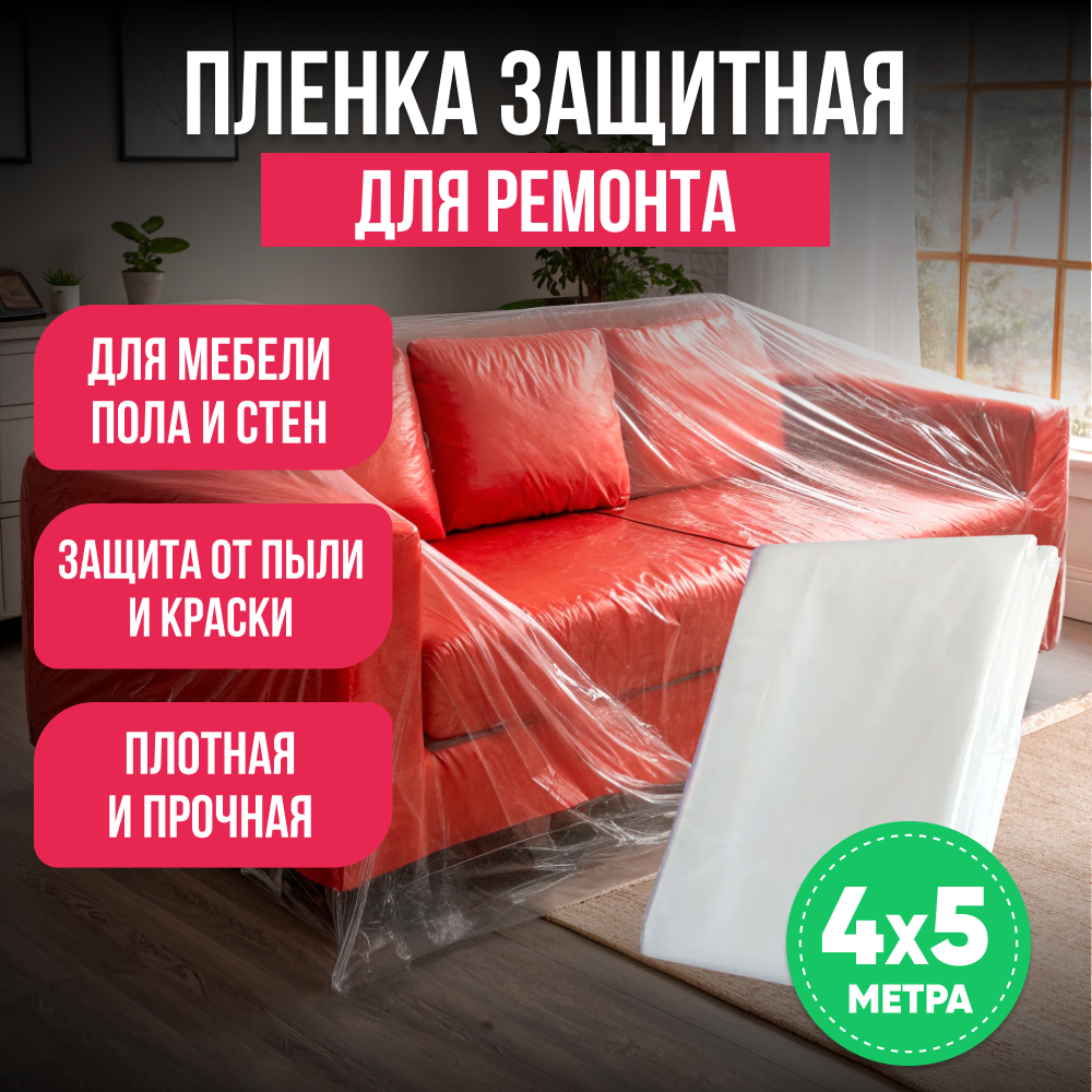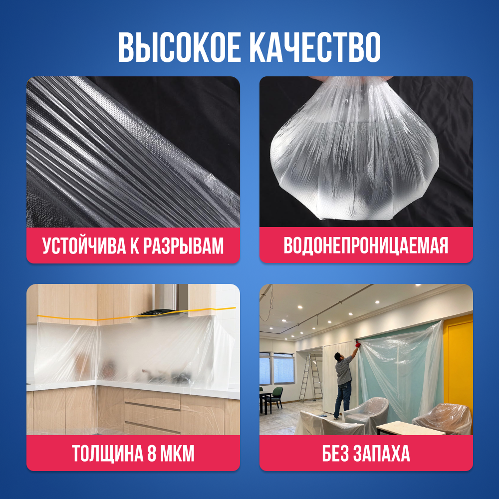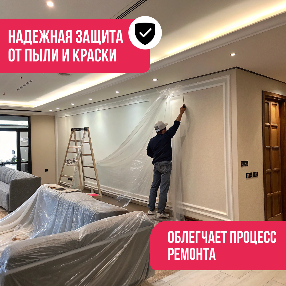 Отзывы на Пленка укрывная для ремонта полиэтиленовая 4walls / Строительная пленка защитная для мебели 4х5 м