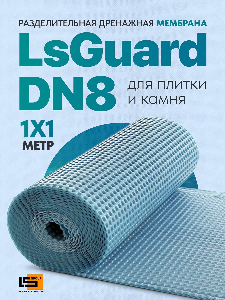 Разделительная дренажная мембрана для плитки и камня LsGuard DN8 (1 м/п) информация: