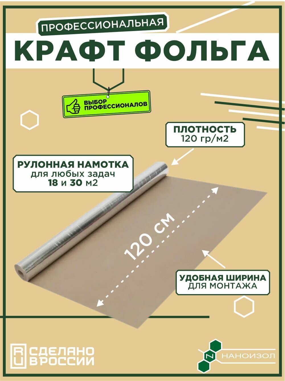 10 цен на Фольга для бани и сауны на крафт бумаге Наноизол FB-18 м2 отражающая пароизоляция
