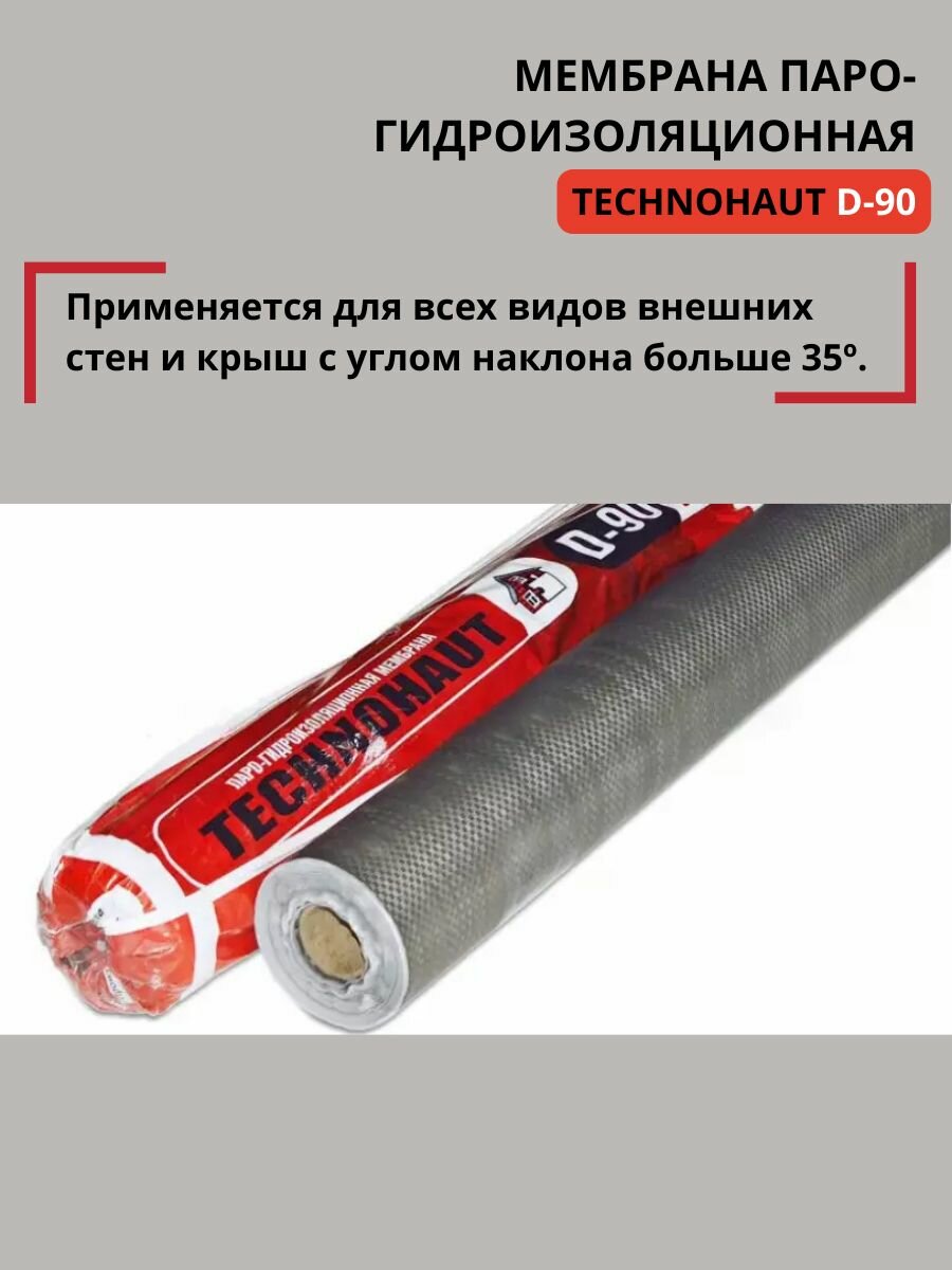 Отзывы на Мембрана паро-гидроизоляционная TechnoHaut D-90, паропроницаемость 30 г/м2, площадь 30 м², ширина 1,5 м