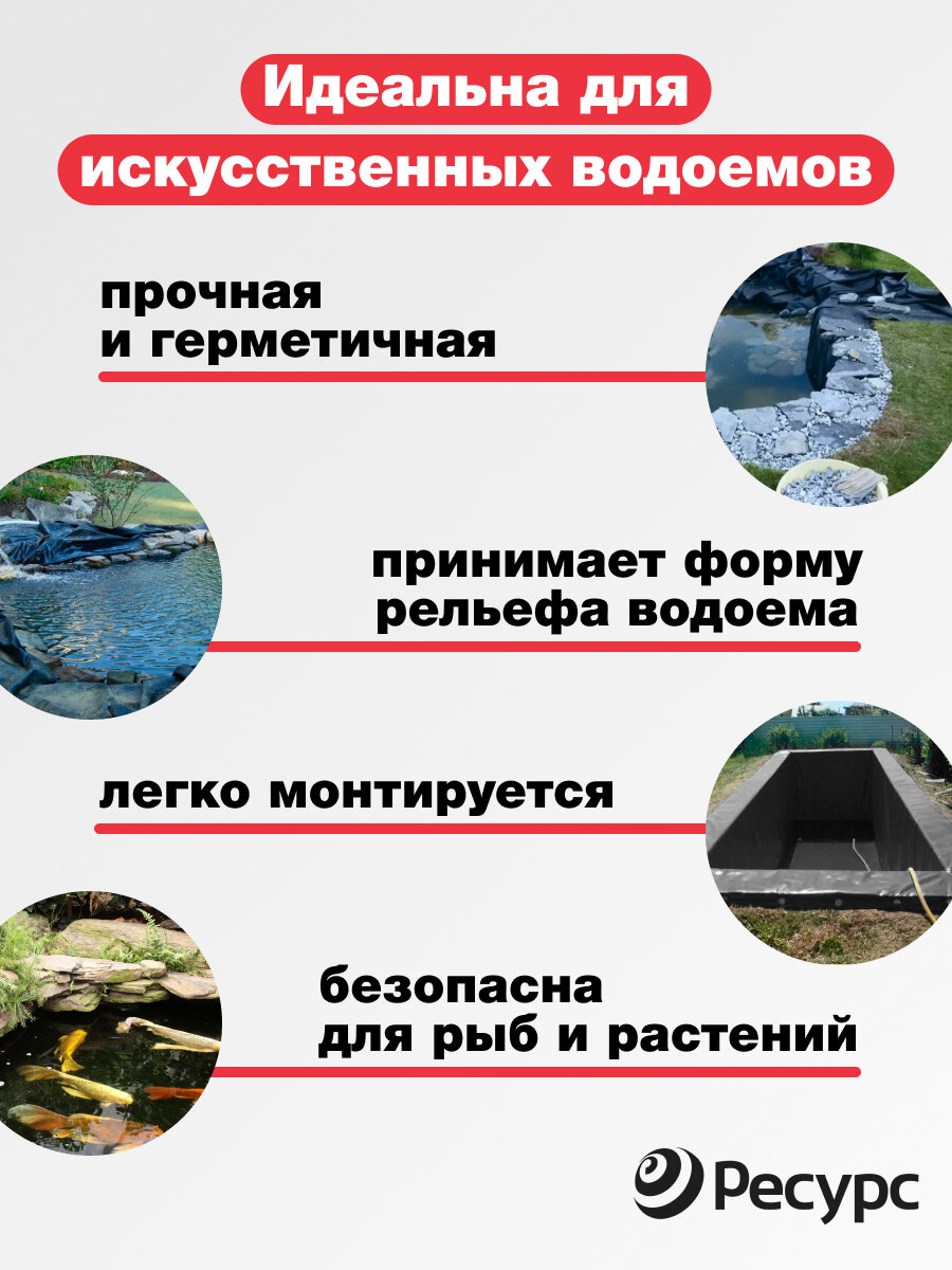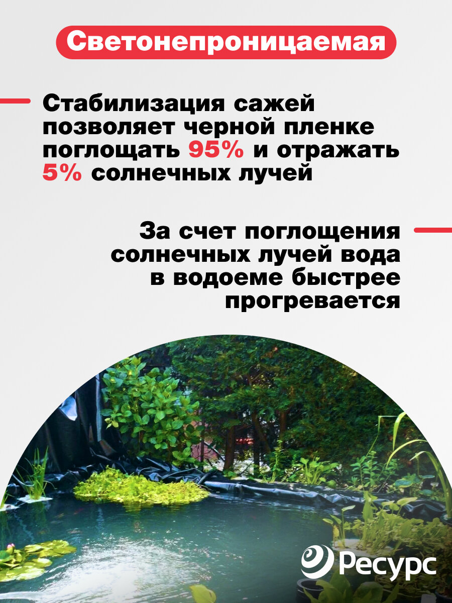 Полиэтиленовая укрывная пленка для пруда и водоема "Ресурс", гидроизоляционная, 400мкм, 10x3м, черная информация: