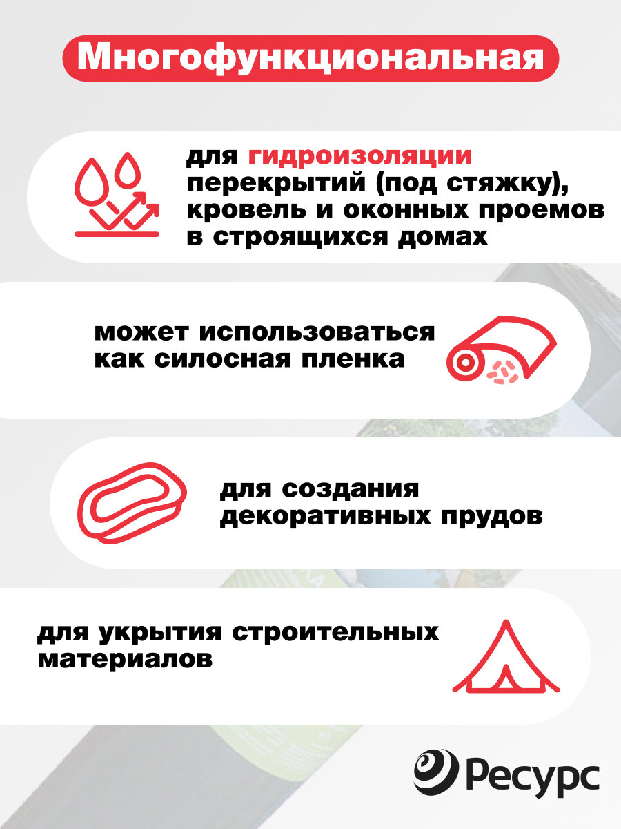 10 цен на Полиэтиленовая укрывная пленка для пруда и водоема "Ресурс", гидроизоляционная, 400мкм, 10x3м, черная