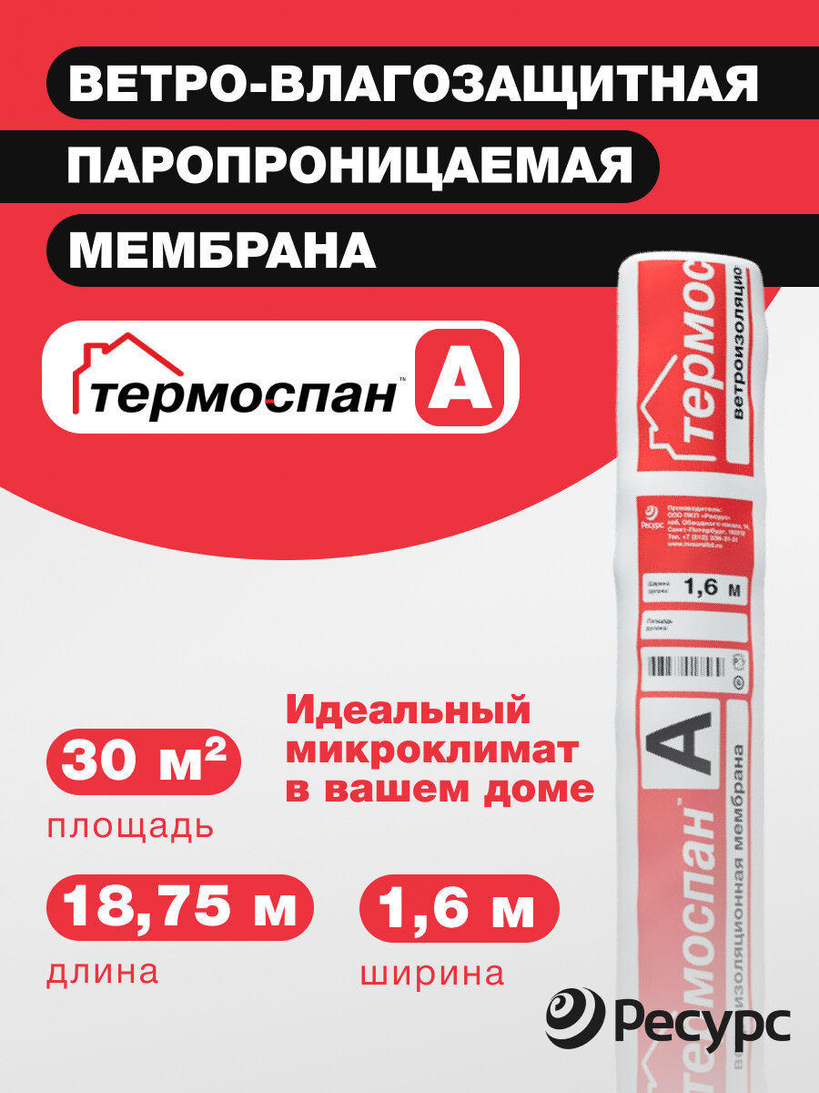 10 цен на Ветро-влагозащитная паропроницаемая мембрана Термоспан А 1,6 м (30 м2)