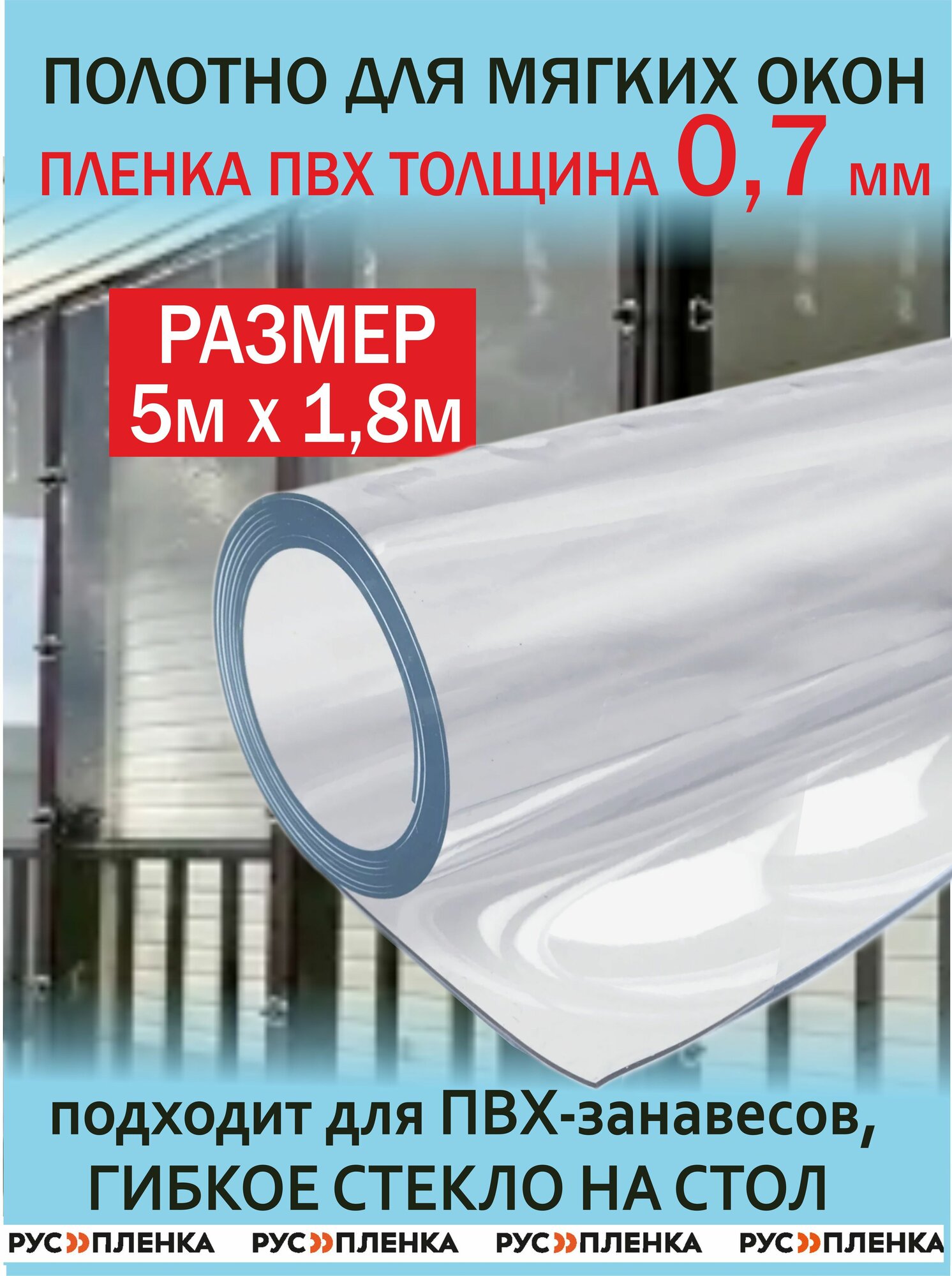 10 цен на Пленка ПВХ 700мкм 5х1,8м полотно мягкое окно, гибкое стекло